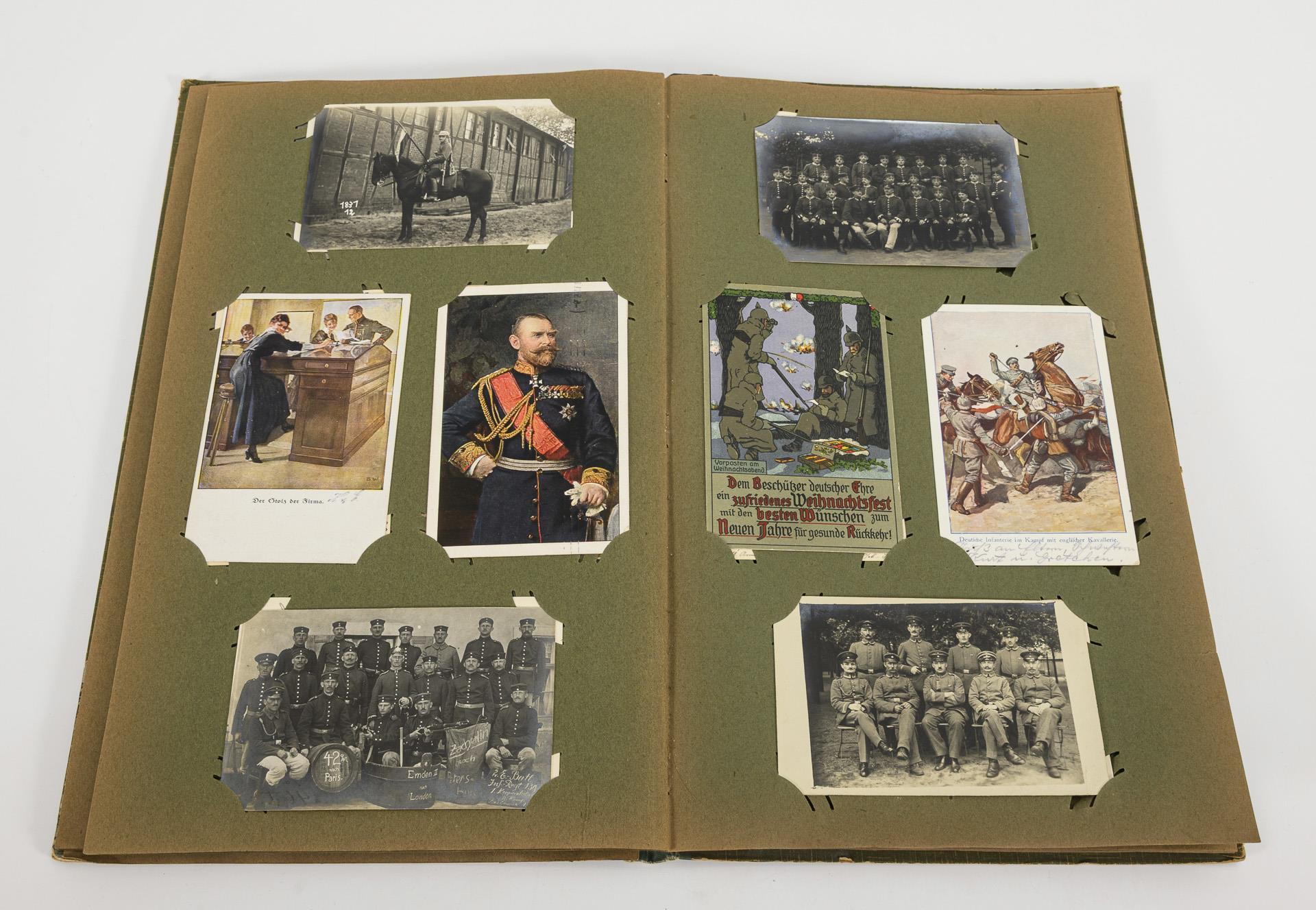 Ca. 174 Karten, alles Militär, auch viele Privataufnahmen von Militärpersonen im Postkartenformat. Grauer Einband "Album" mit Eisernem Kreuz.