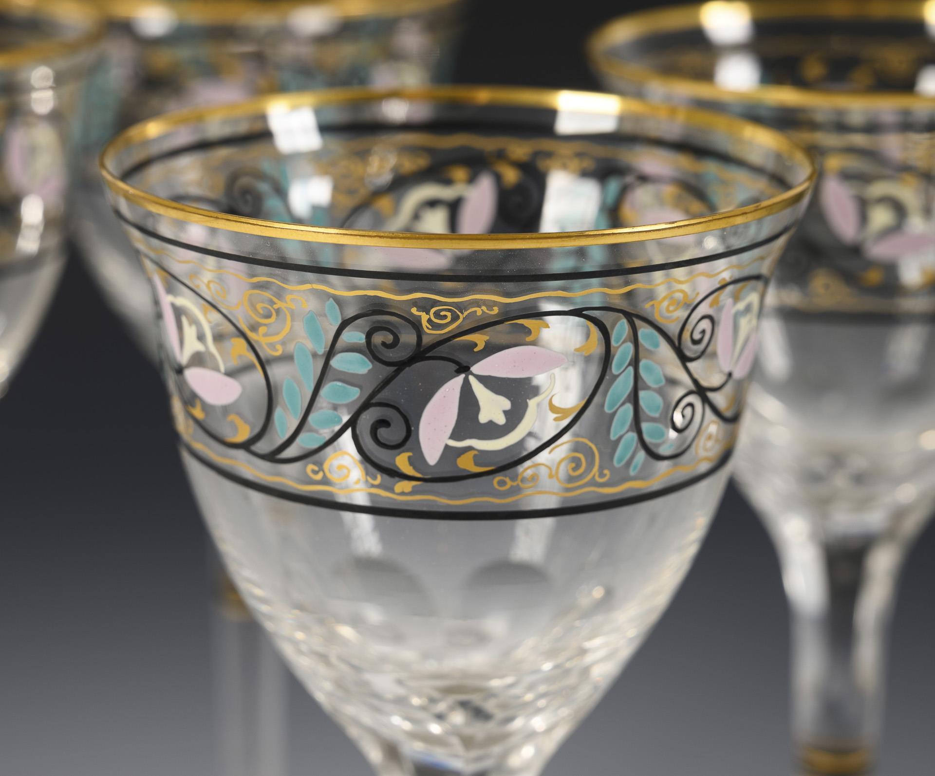 6 Jugendstil-Weingläser. Josephinenhütte.