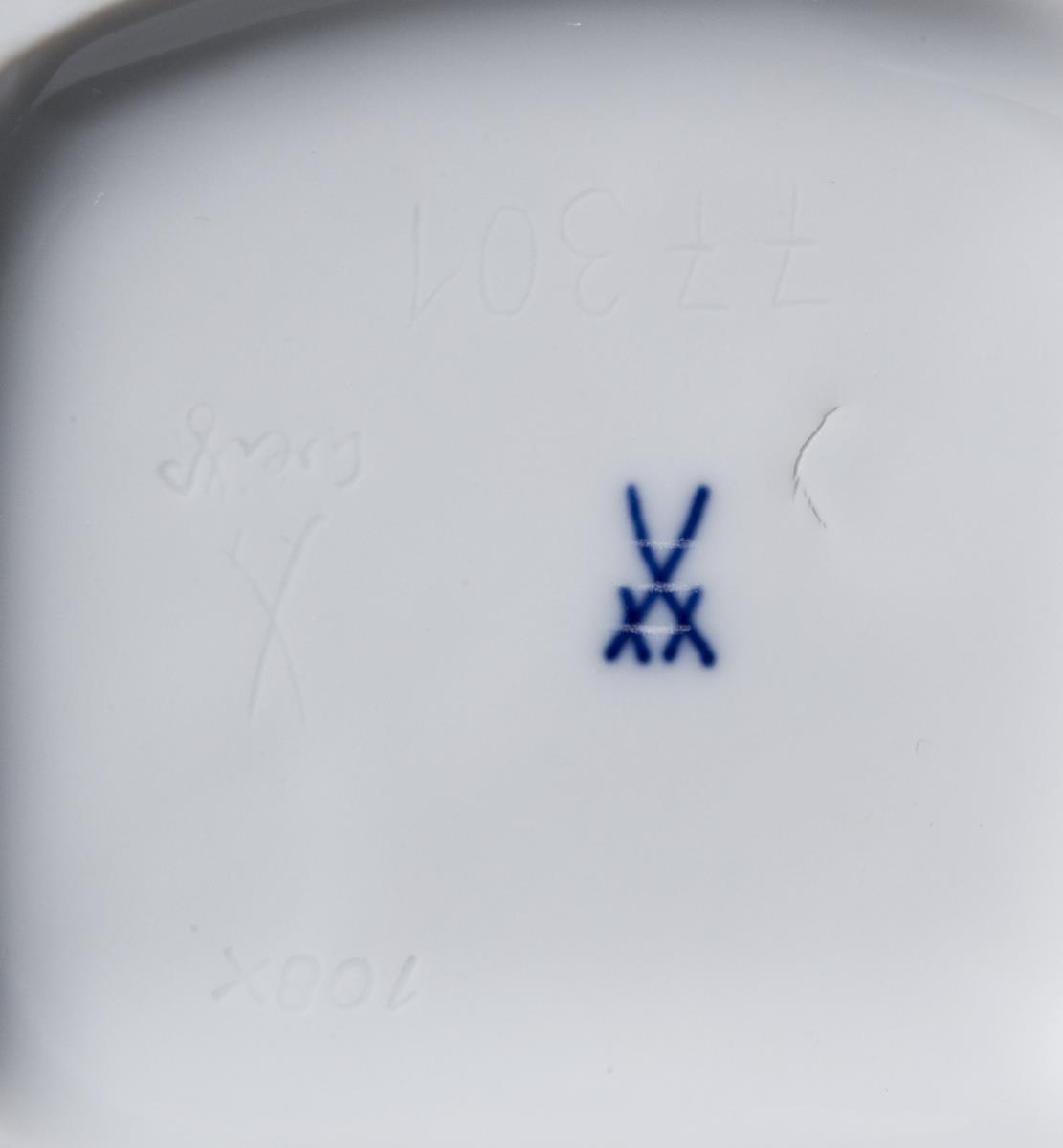 Modell von Elfriede Reichel-Drechsler 1957. Weißporzellan. Pressmarken, Schwertermarke dreimal gestrichen.
