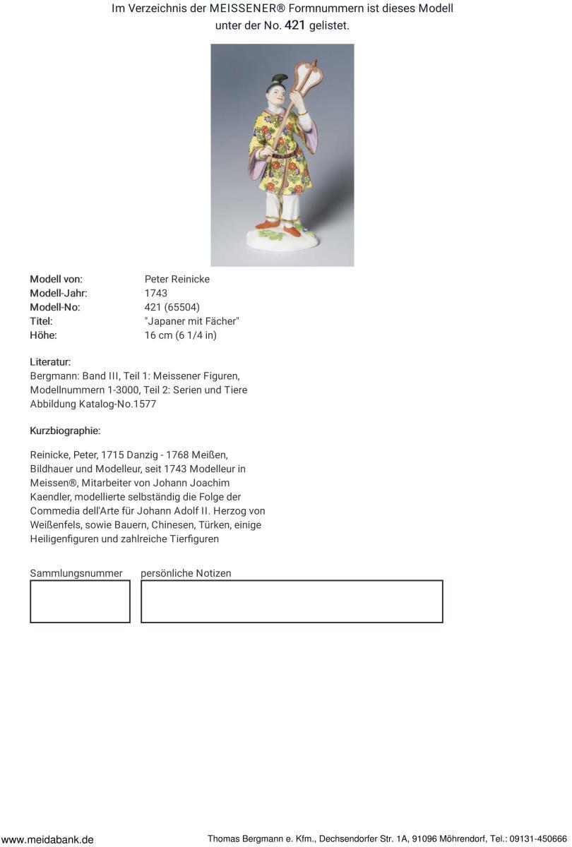 Meissen-Manufaktur-Preis: 3290,- Euro. Reinicke, Bildhauer. Seit 1743 Modelleur in Meissen. Schuf zahlreiche Figuren. Mitarbeiter von Johann Joachim Kaendler * Partnerauktion Bergmann.