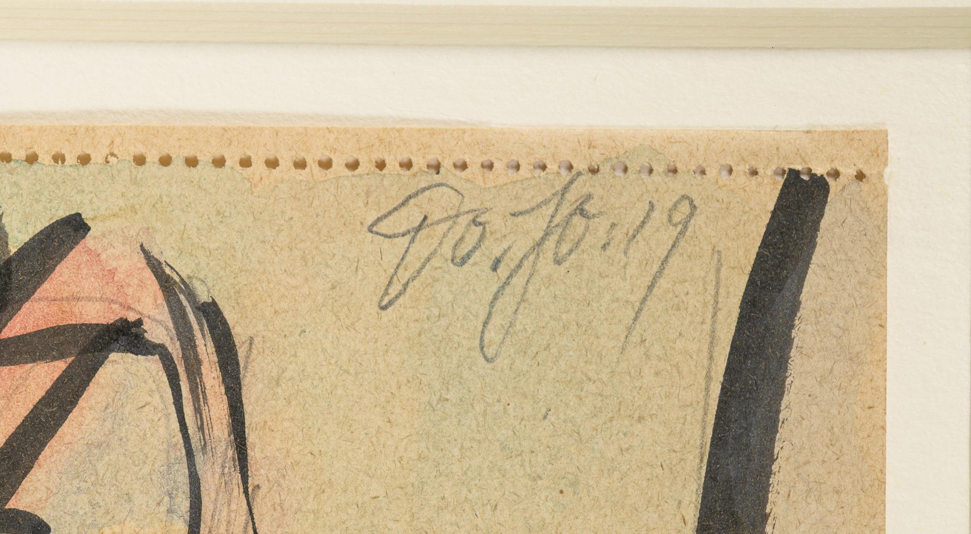 19 x 12 cm. Gerahmt & hinter Glas : 62 x 51,5 cm (heller Rahmen).