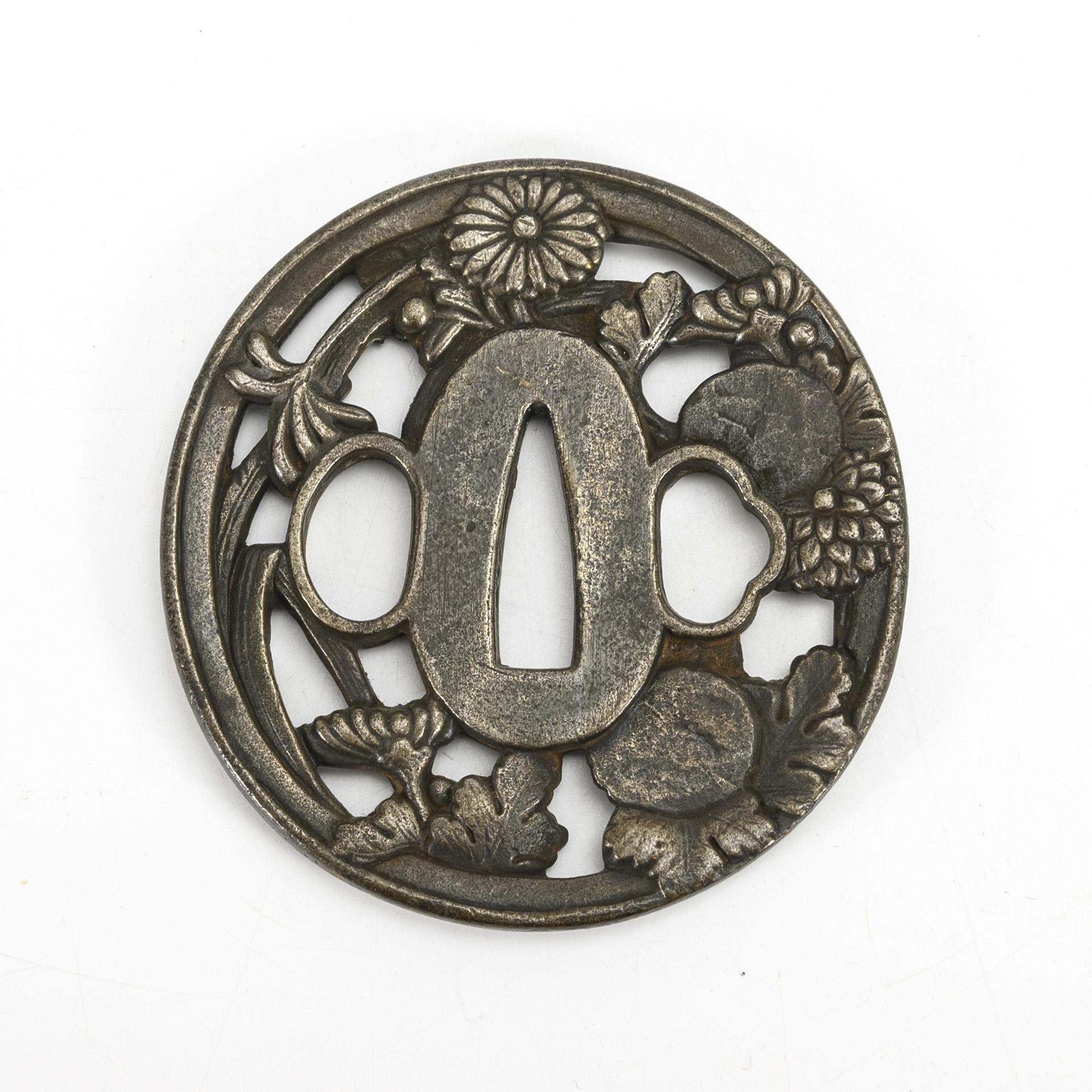 Tsuba mit Blumendekor.