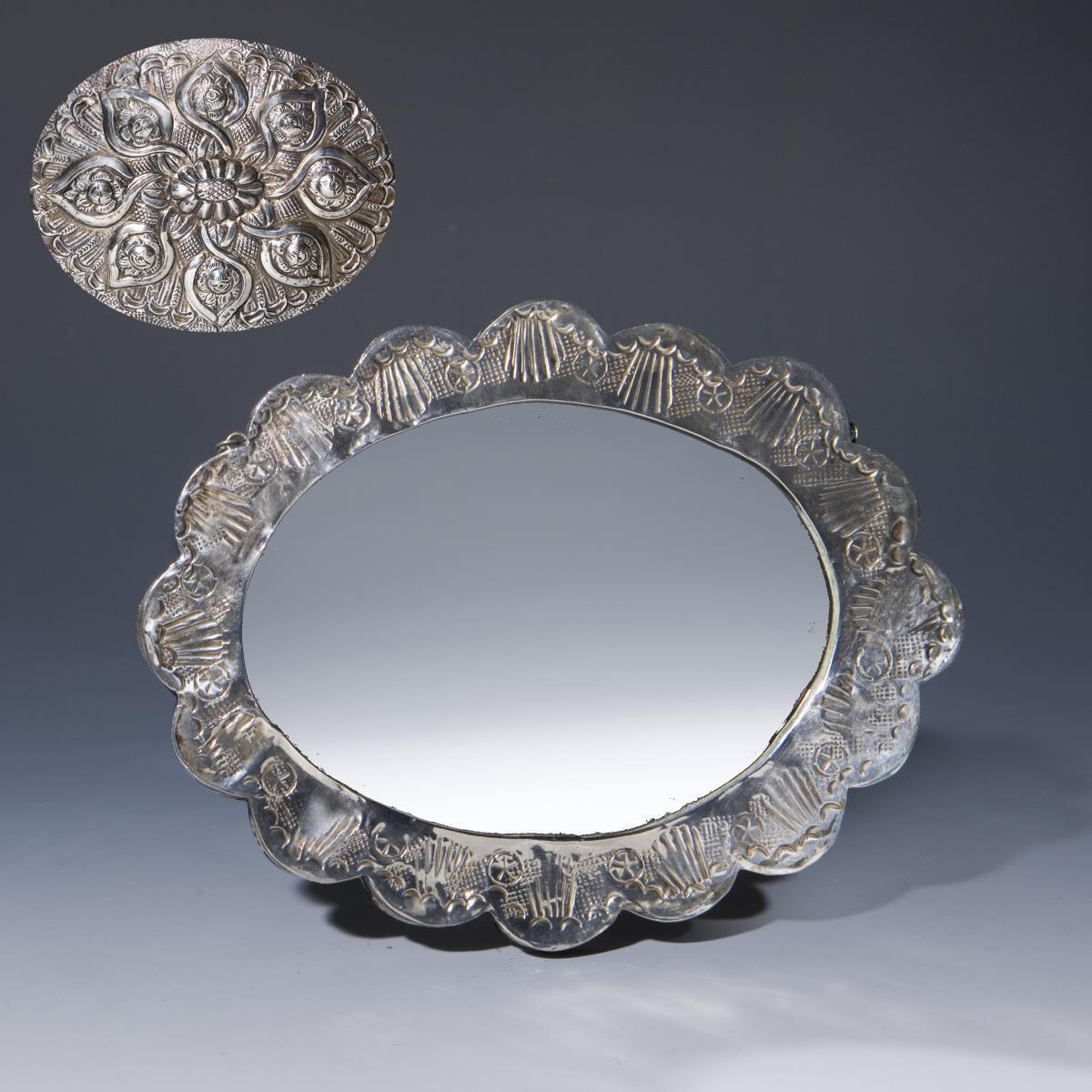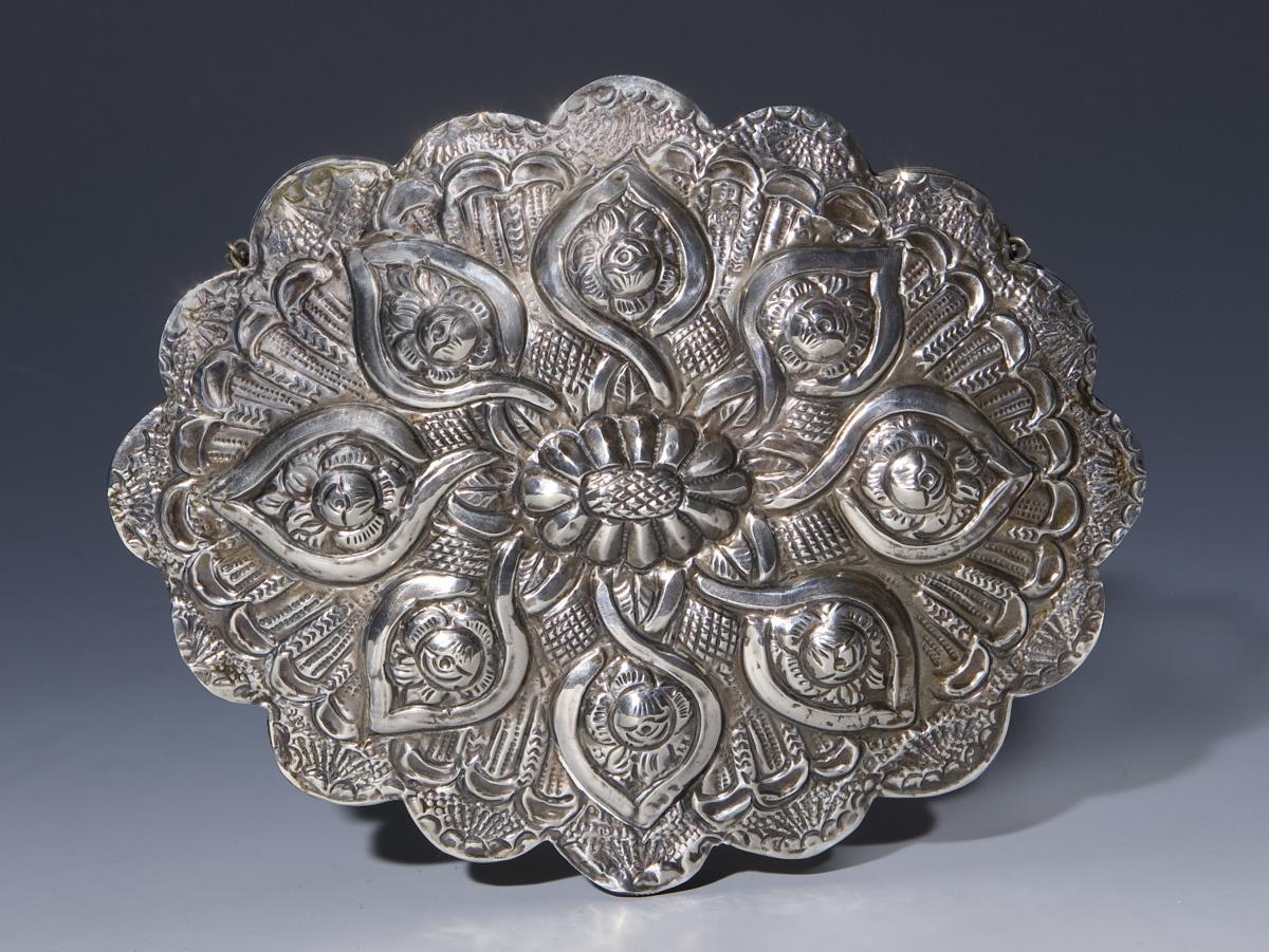Floral und ornamental reliefiert, graviert, gefüllt. Ovales Spiegelglas. Undeutliche Punze.