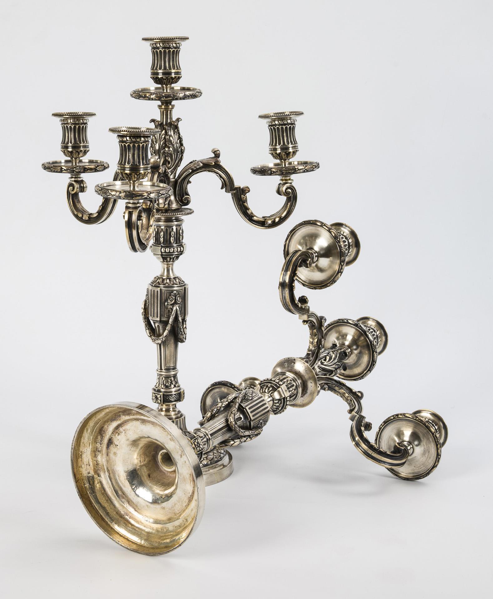 Paar vierflammige, versilberte Bronzekandelaber.
