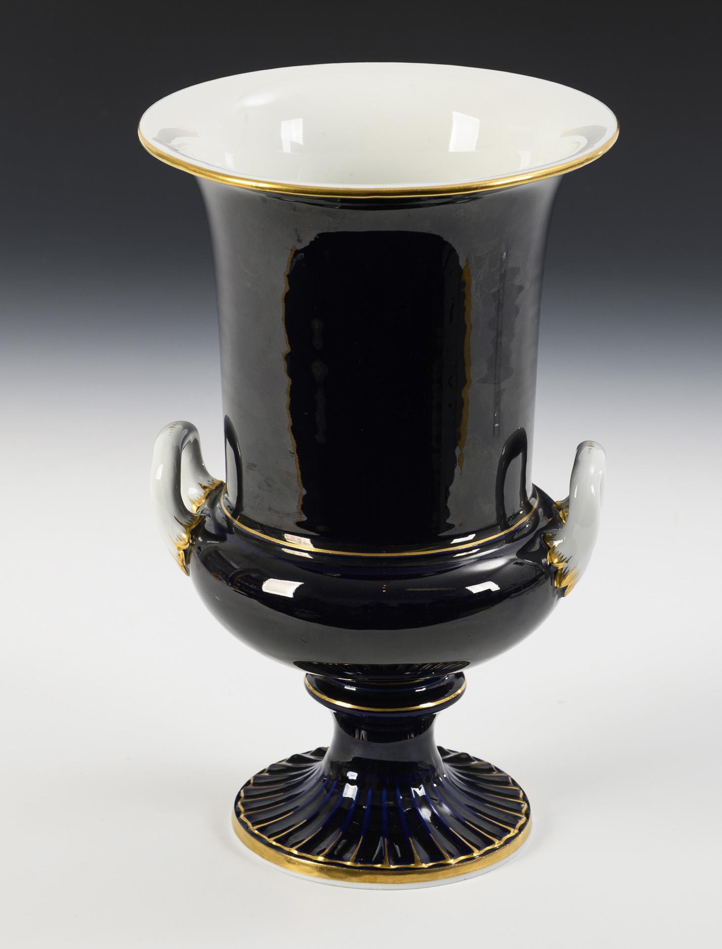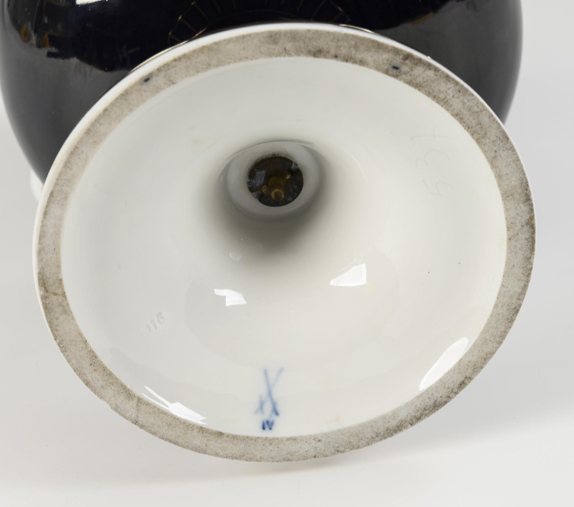 Vase mit Kobaltfond und Blumenmalerei. Meissen.