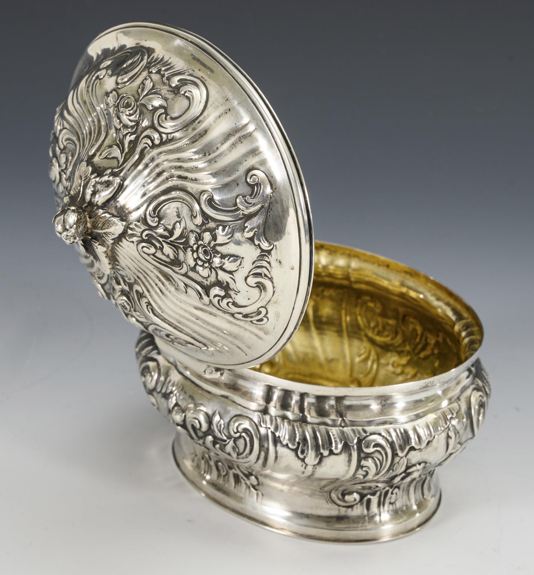 Ovale Dose in barocker Form. Minimale Gebrauchsspuren.
