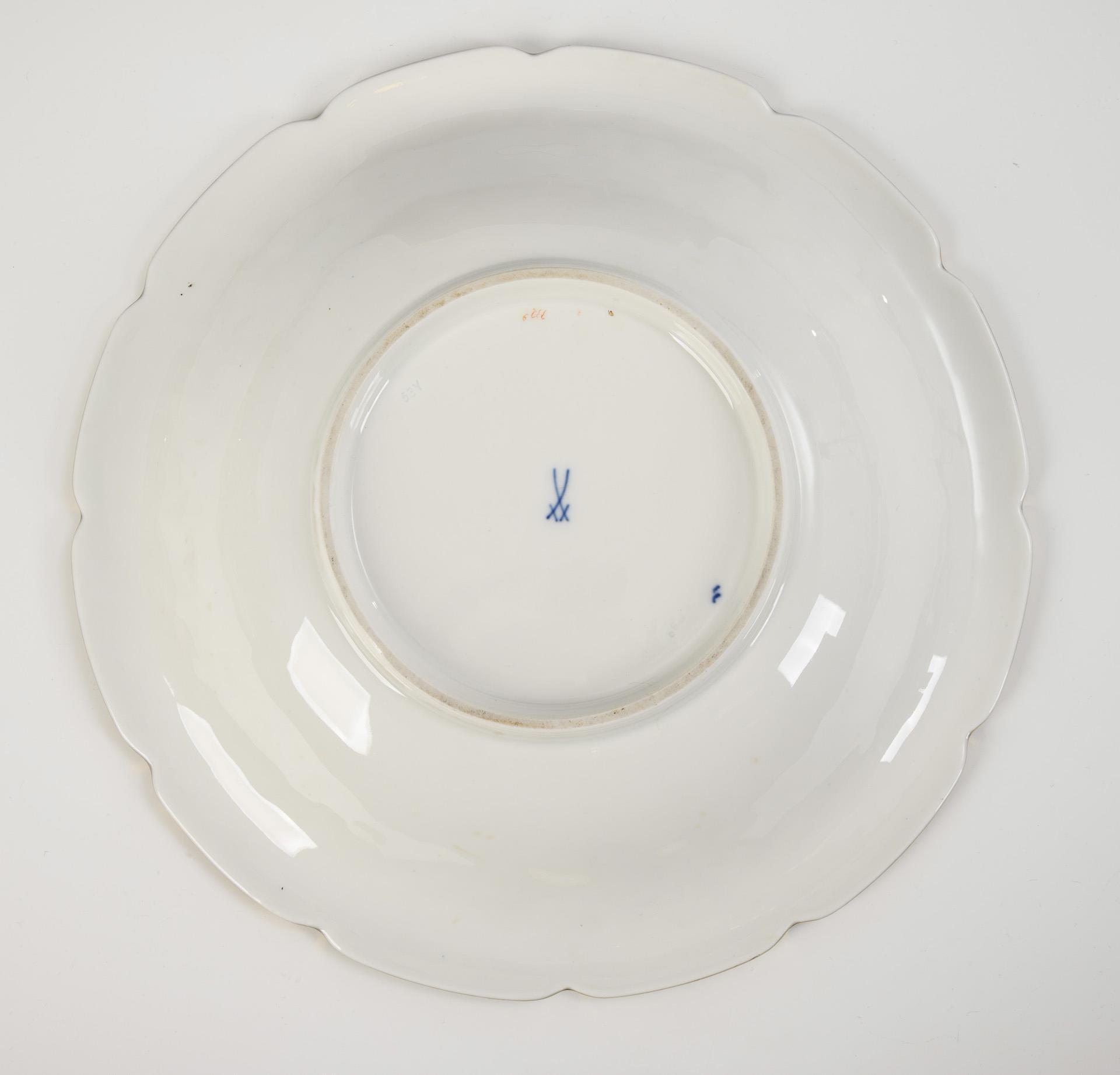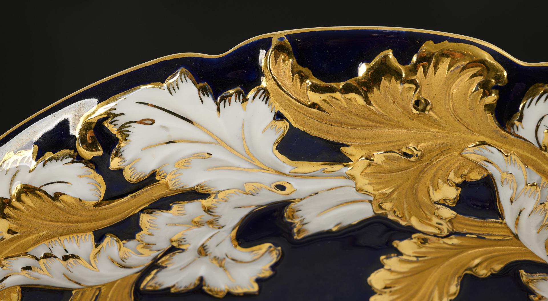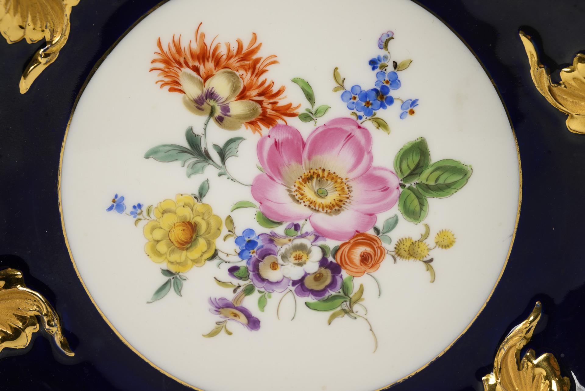 Große Prunkschale mit Kobaltfond und Blumenmalerei. Meissen.