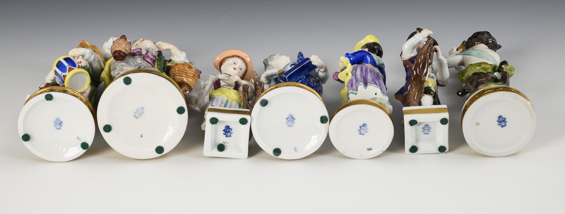 4 verschiedene Gärtnerkinder, 1 Bettelknabe mit Trommel, 1 Putto mit Muschel und 1 Bettelknabe mit Vogel und Instrument.