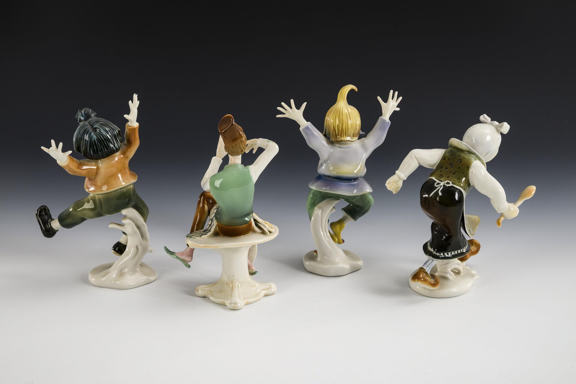 4 Figuren nach "Max und Moritz" von Wilhelm Busch (Max, Moritz, Witwe Bolte, Schneider Böck). 1 Finger fehlt.