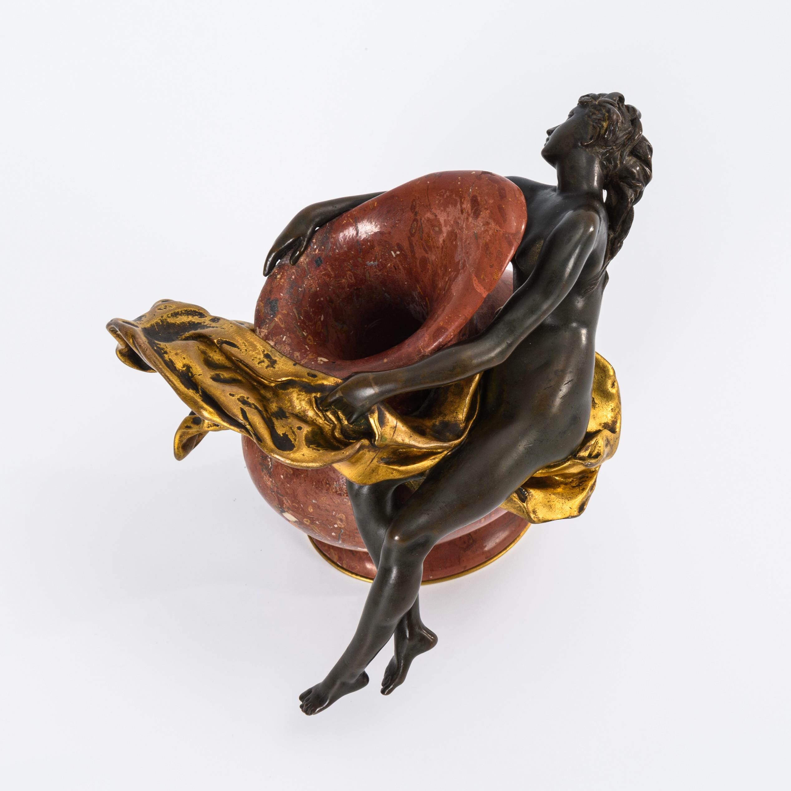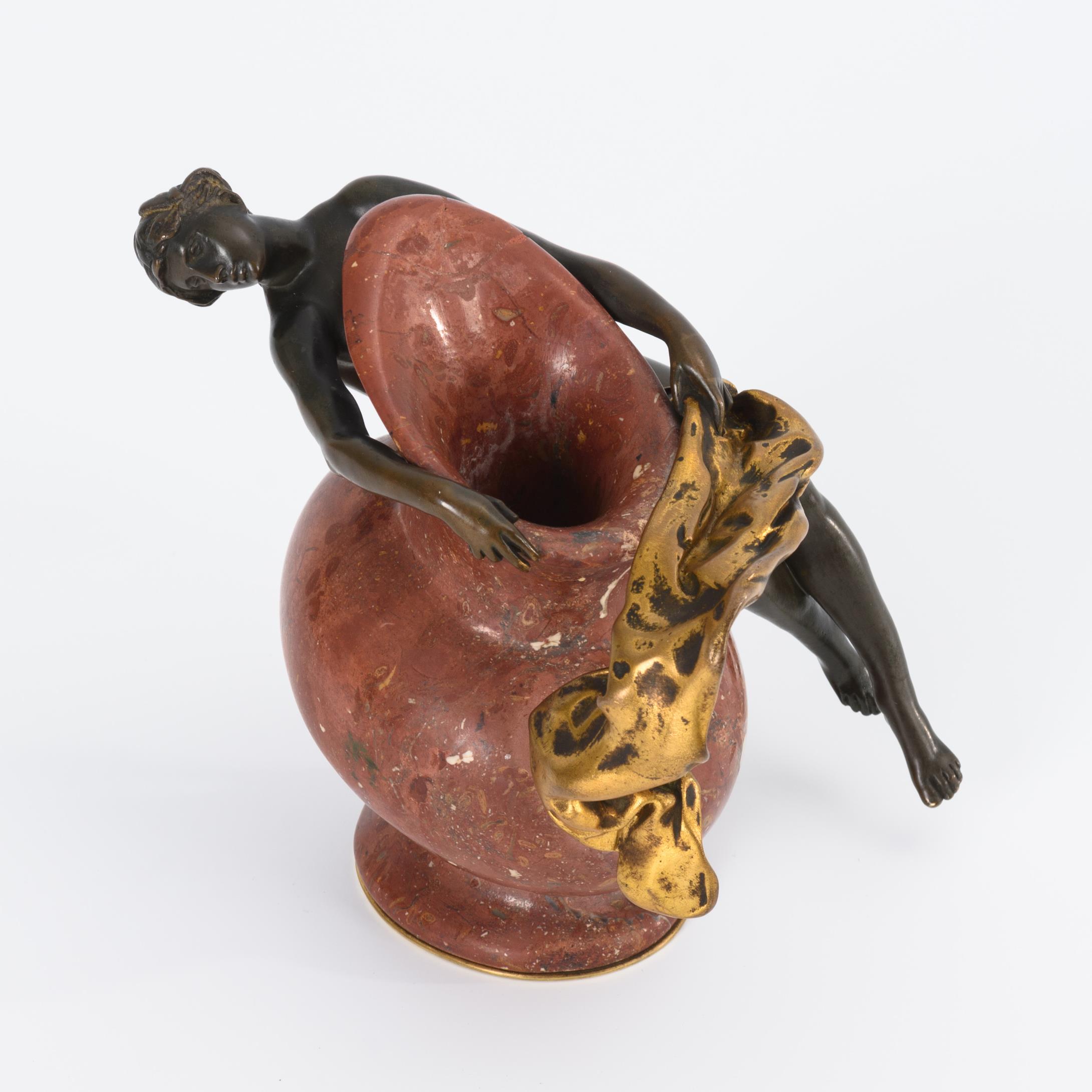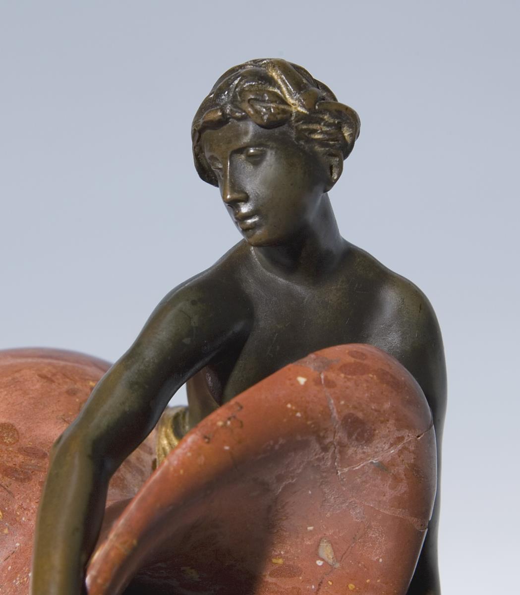 Bronze, partiell dunkel patiniert. Roter Marmor. Höhe: 12 cm.