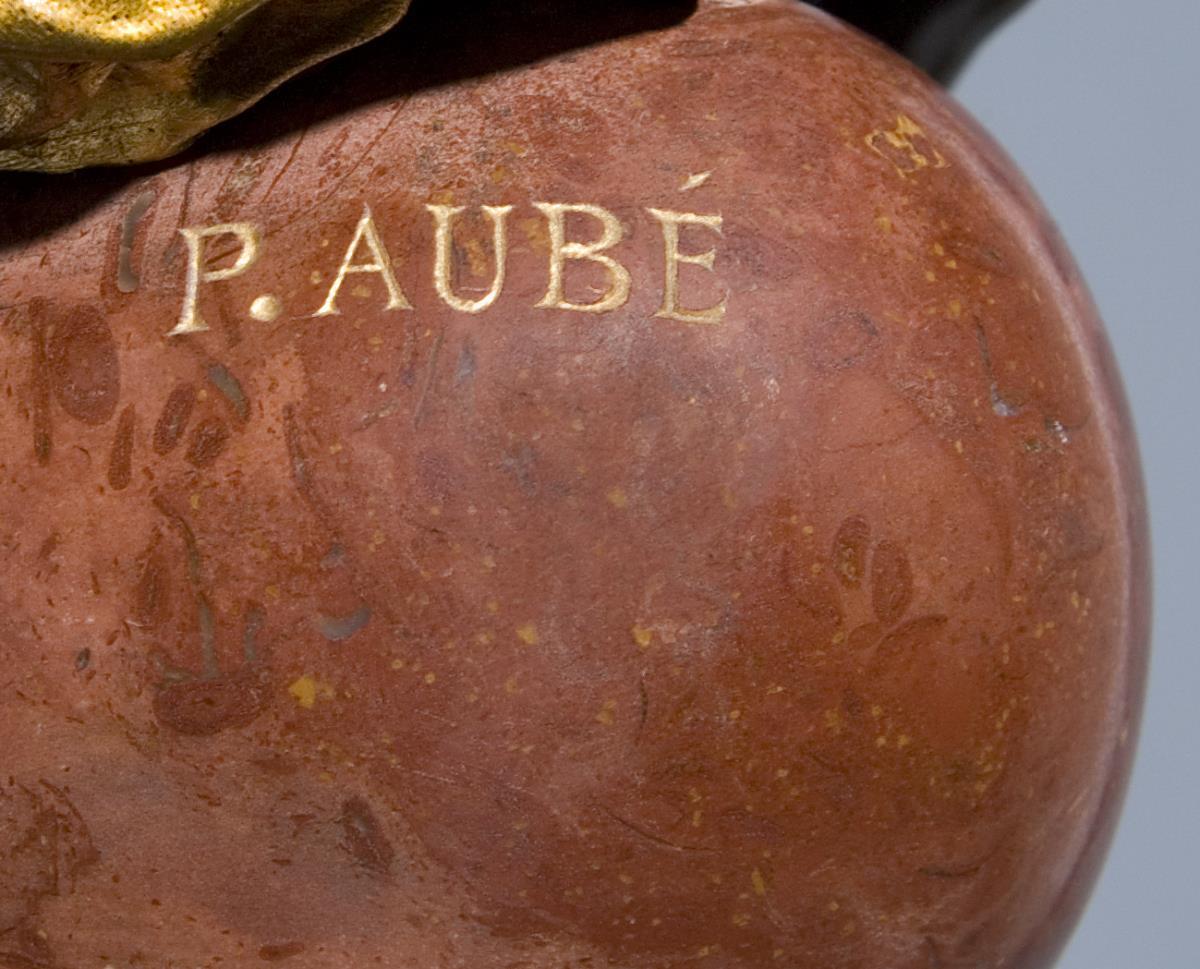 Aubé, Bildhauer, studierte an der Ecole des Beaux-Arts in Paris. Erhielt zahreiche Auszeichnungen. Arbeiten in Marmor, Bronze und Terrakotta. Von ihm stammen auch diverse Modelle in Verbindung mit Gefäßen * Partnerauktion Bergmann.