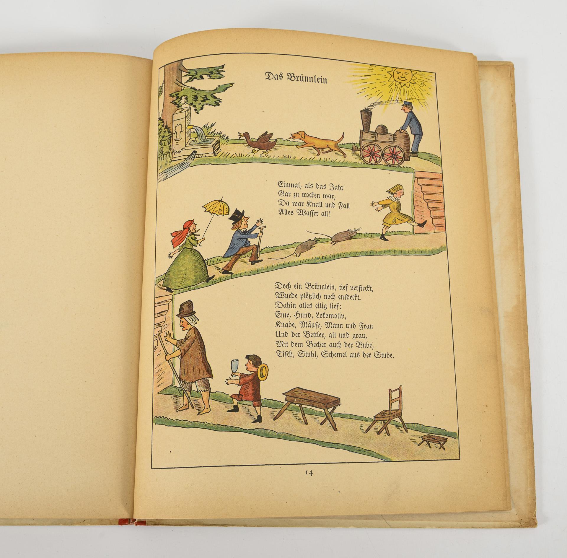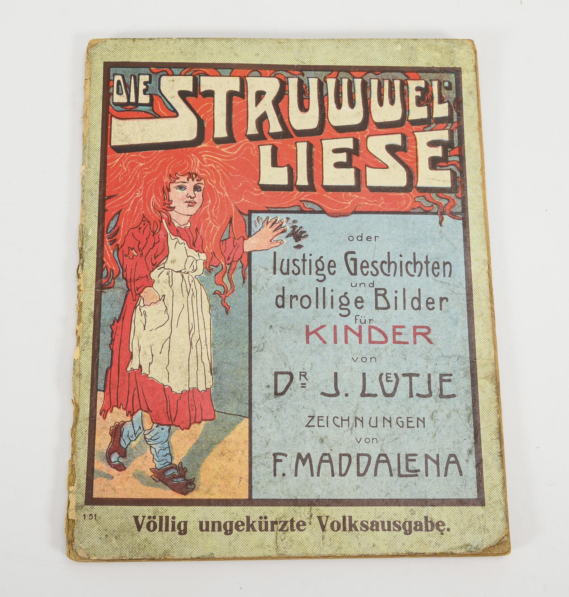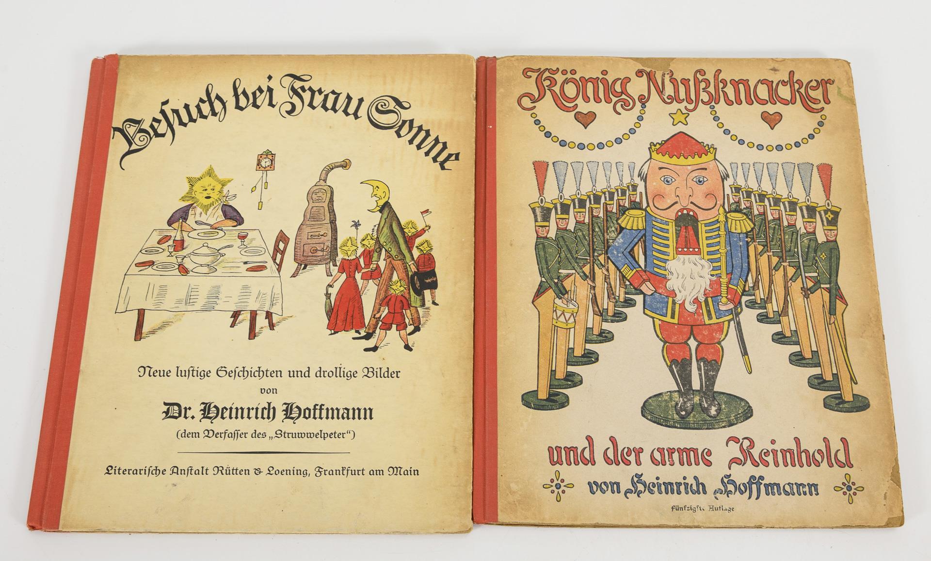 Heinrich Hoffmann: "König Nußknacker und der arme Reinhold". 50. Auflage, 32 Blatt, farbig illustriert. / Heinrich Hoffmann: "Besuch bei Frau Sonne" , 16 Blatt. Beide Frankfurt am Main, Literarische Anstalt Rütten & Loening, im Halbleineneinband, 28 x 23 cm. / Lütje; Maddalena: "Die Struwwel.Liese", 24 Seiten im Hartpappeinband, 22 x 17 cm. Alle mit Alters- und Gebrauchsspuren.