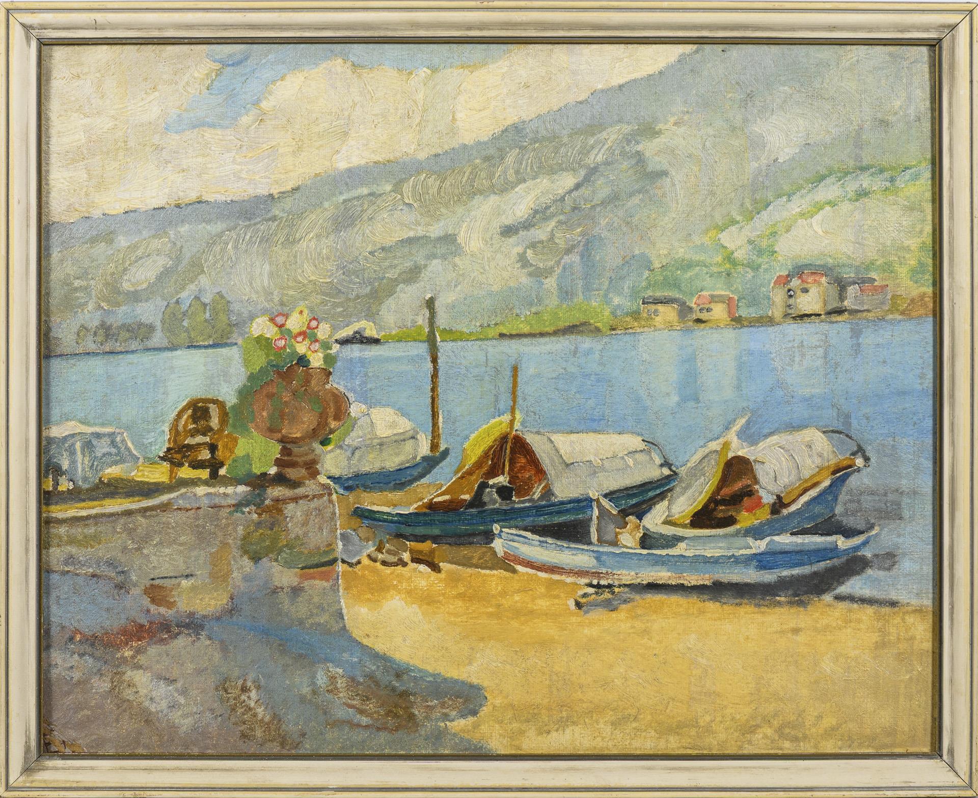 Oberitalienische Seelandschaft mit Booten