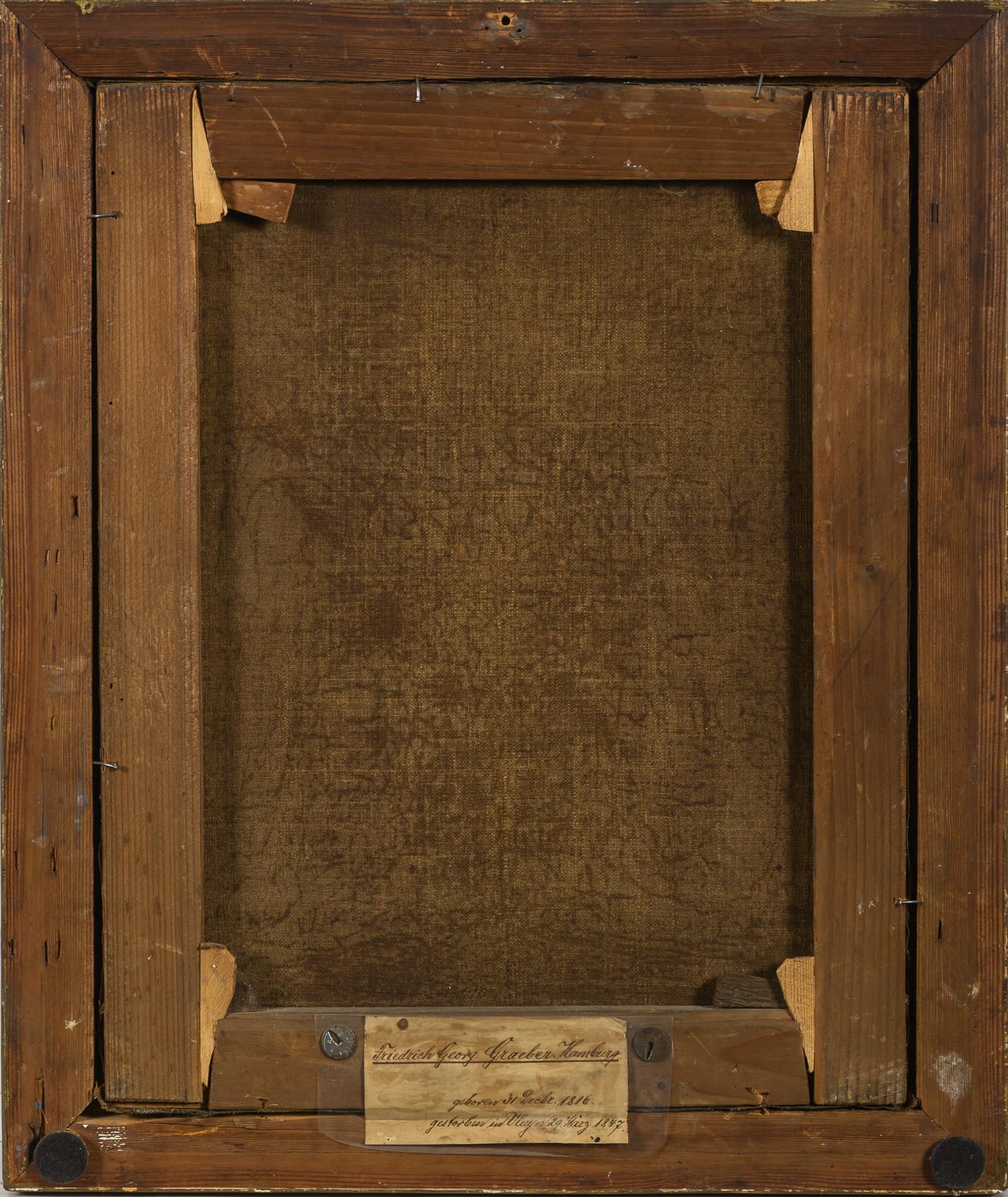 Porträt des Friedrich Georg Graeber (1816-1847) aus Hamburg im blauen Gehrock mit gelber Weste und weißem Hemd. Leichte Altersspuren.