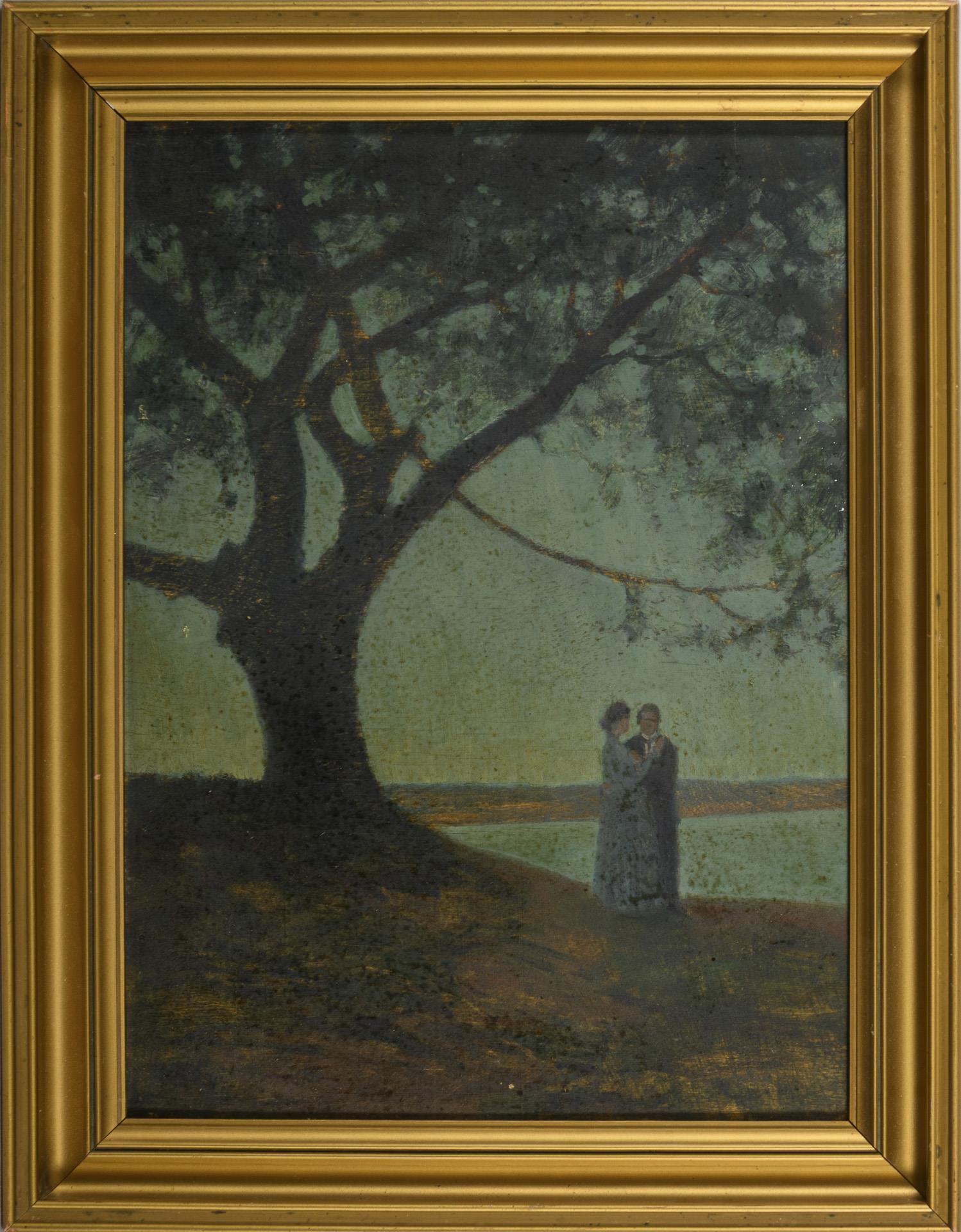 Öl/Holzwerkstoff. Links unten teils unterm Rahmen undeutlich signiert. Um 1900.
