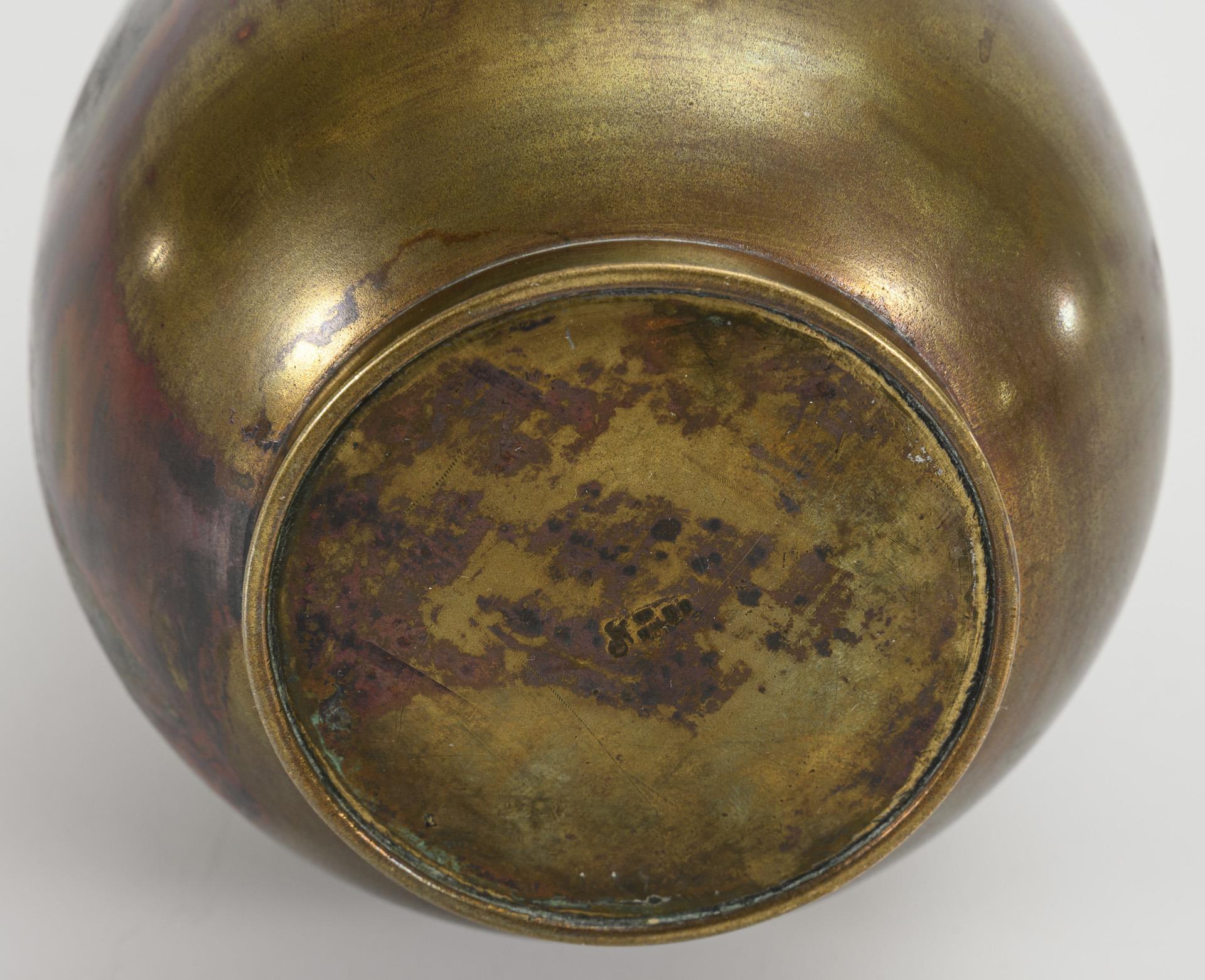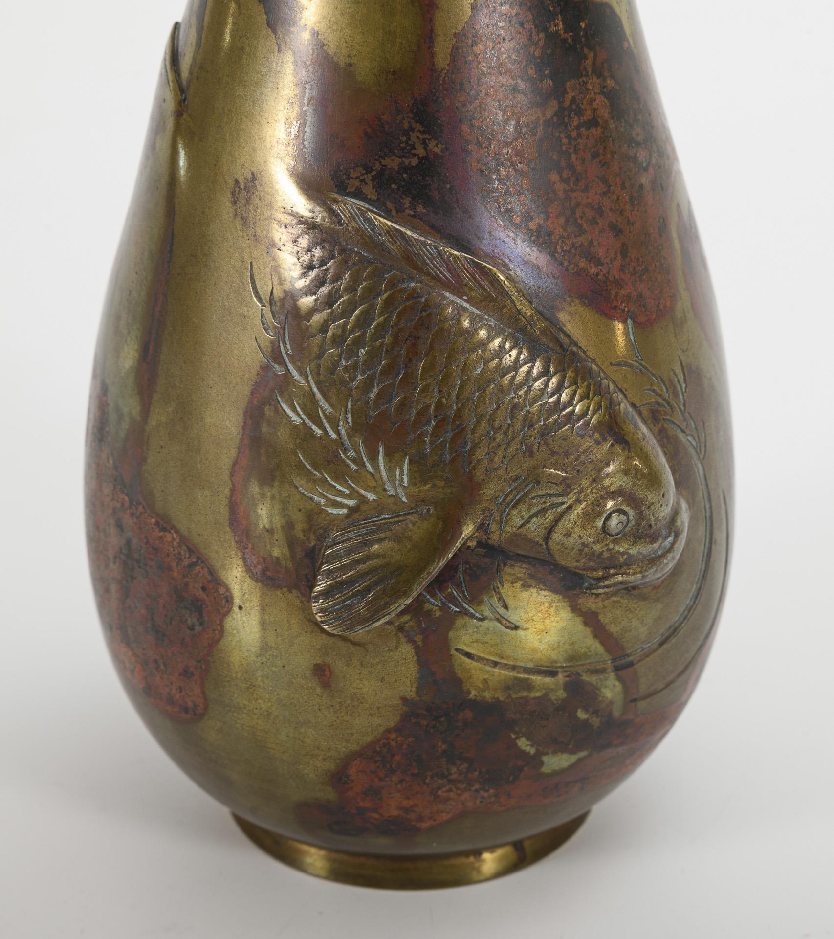 Glatter, ovoider Korpus mit reliefiertem Karpfen, der aus dem Wasser auftaucht. Große rot-schwarze Flächen als Teil der Oberflächengestaltung(?).