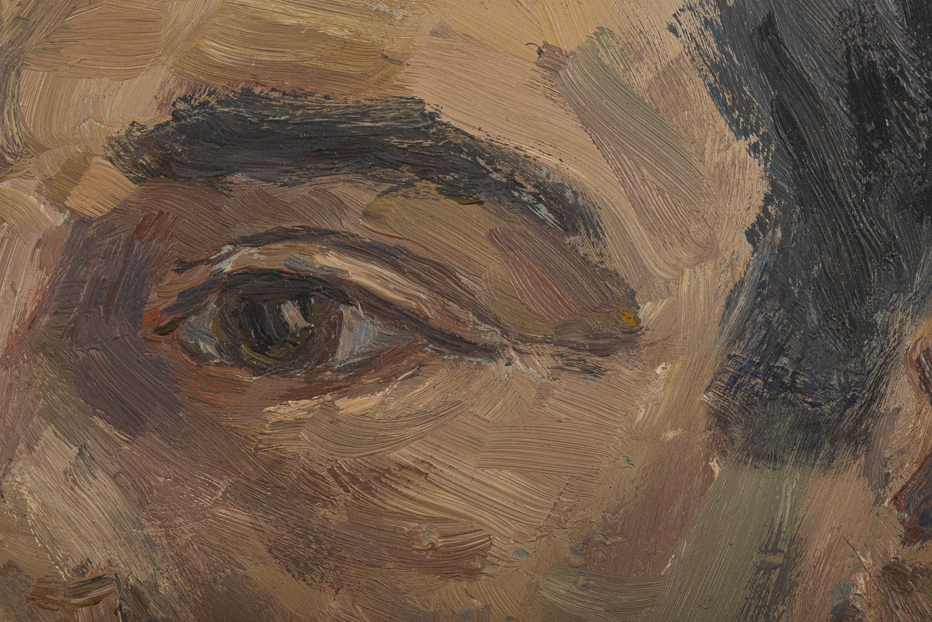 Porträt eines Mannes im Drei-Viertel-Profil vor neutralem Grund.