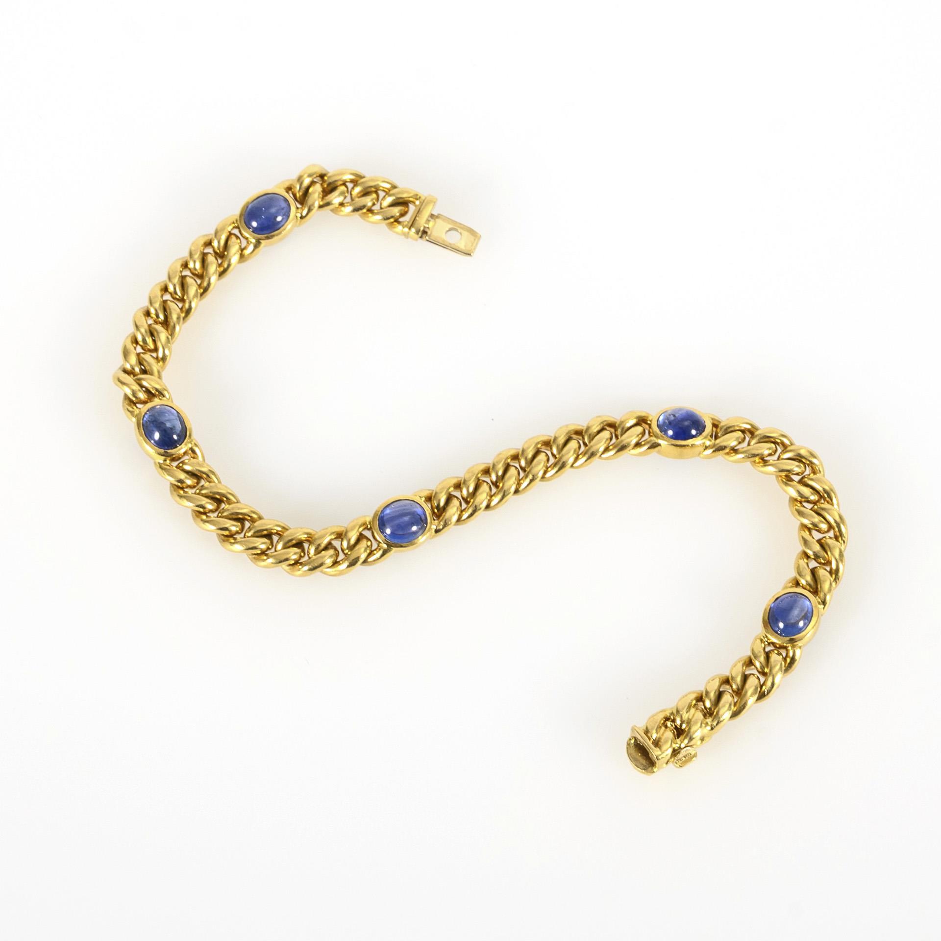 Armband mit blauen Farbstein-Cabochons, wohl Saphire.