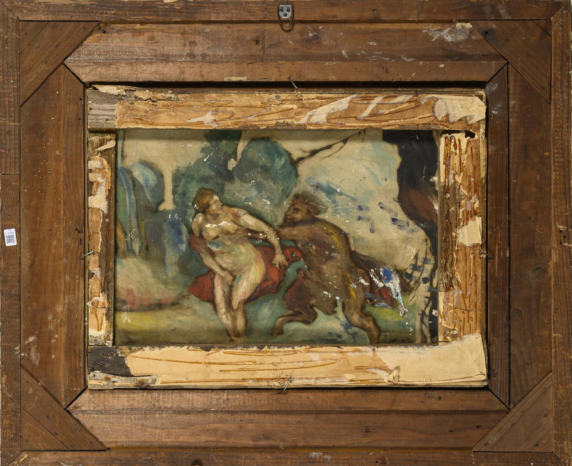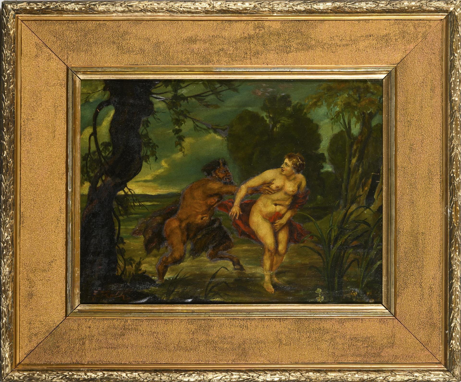 Undeutlich signiert: Faun und Nymphe