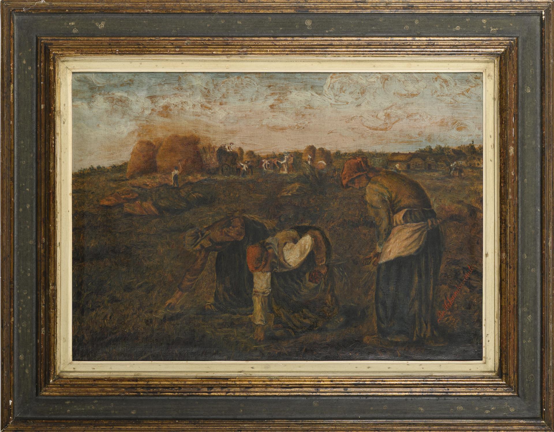 Die Bauern auf dem Feld bei der Ernte und beim Verladen des Strohs. Reinigungsbedürftig.