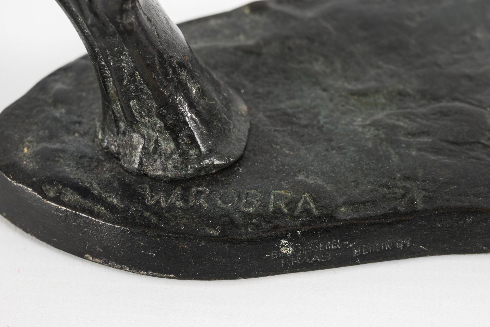 Bronze patiniert. An Bronzeplinthe "W. Robra" signiert. 19 x 23,5 x 11,5 cm. 2,3 kg.