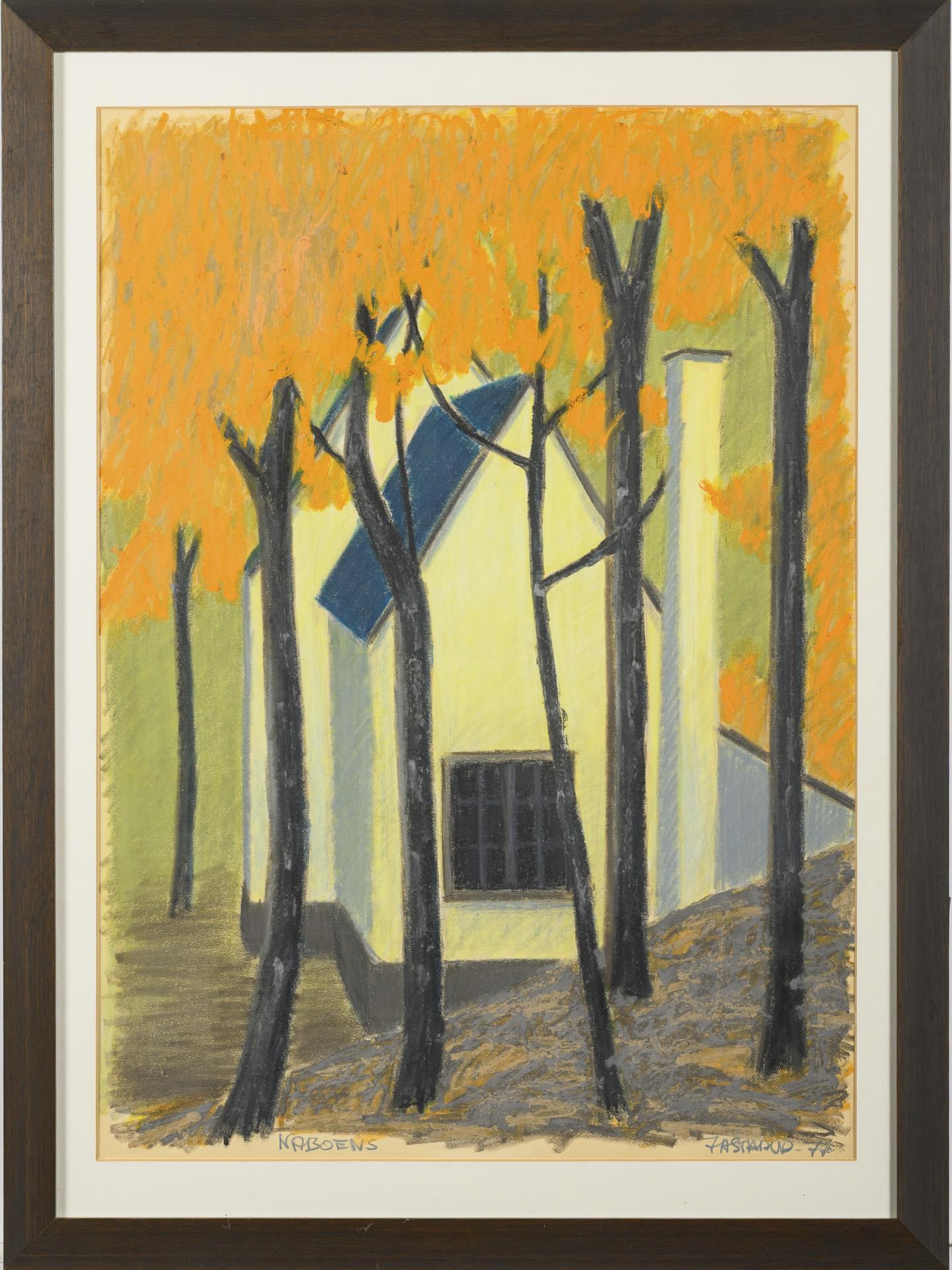 Undeutlich signiert: Moderne Landschaft mit Häusern