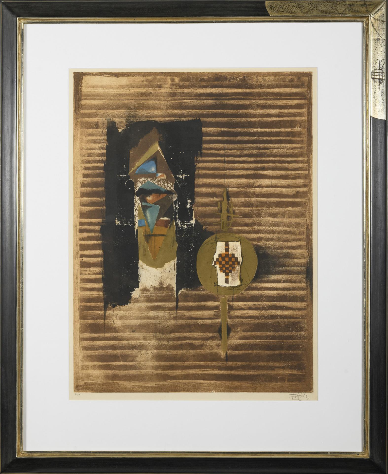 77 x 58 cm. Gerahmt & hinter Glas : 115 x 94 cm.