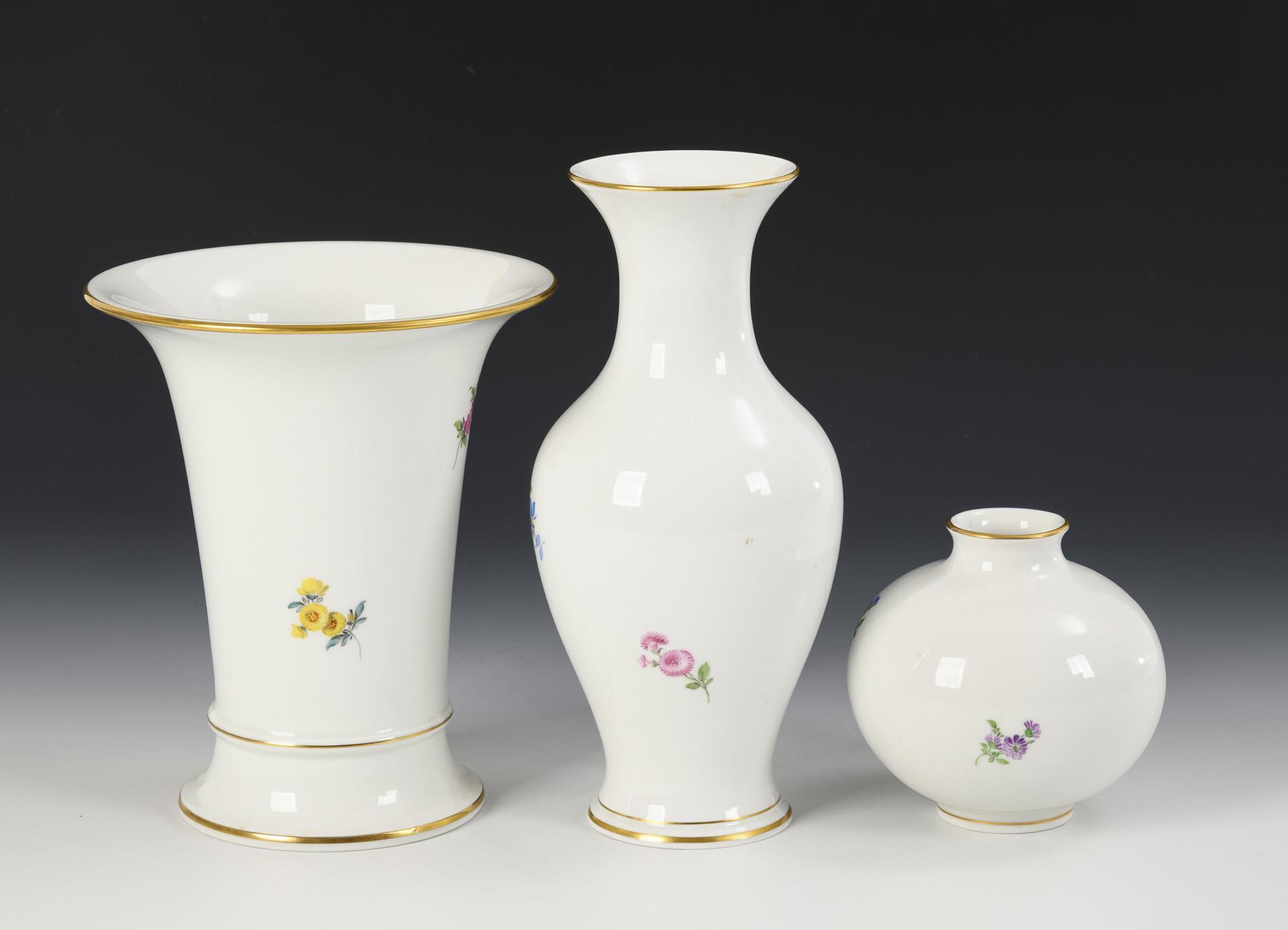 3 Vasen mit Blumenmalerei. Meissen.