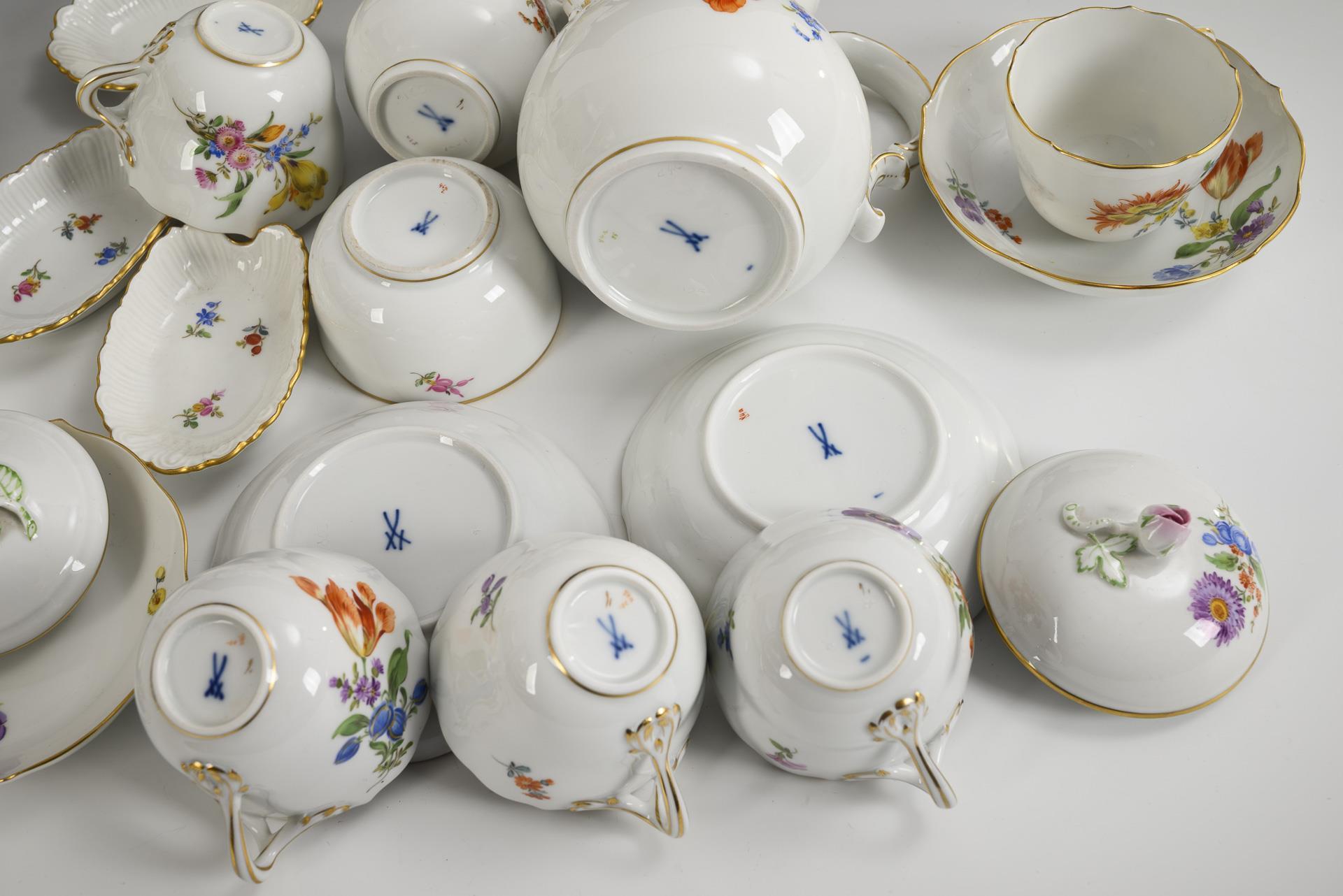 Mokkaservice mit Blumenmalerei. Meissen.