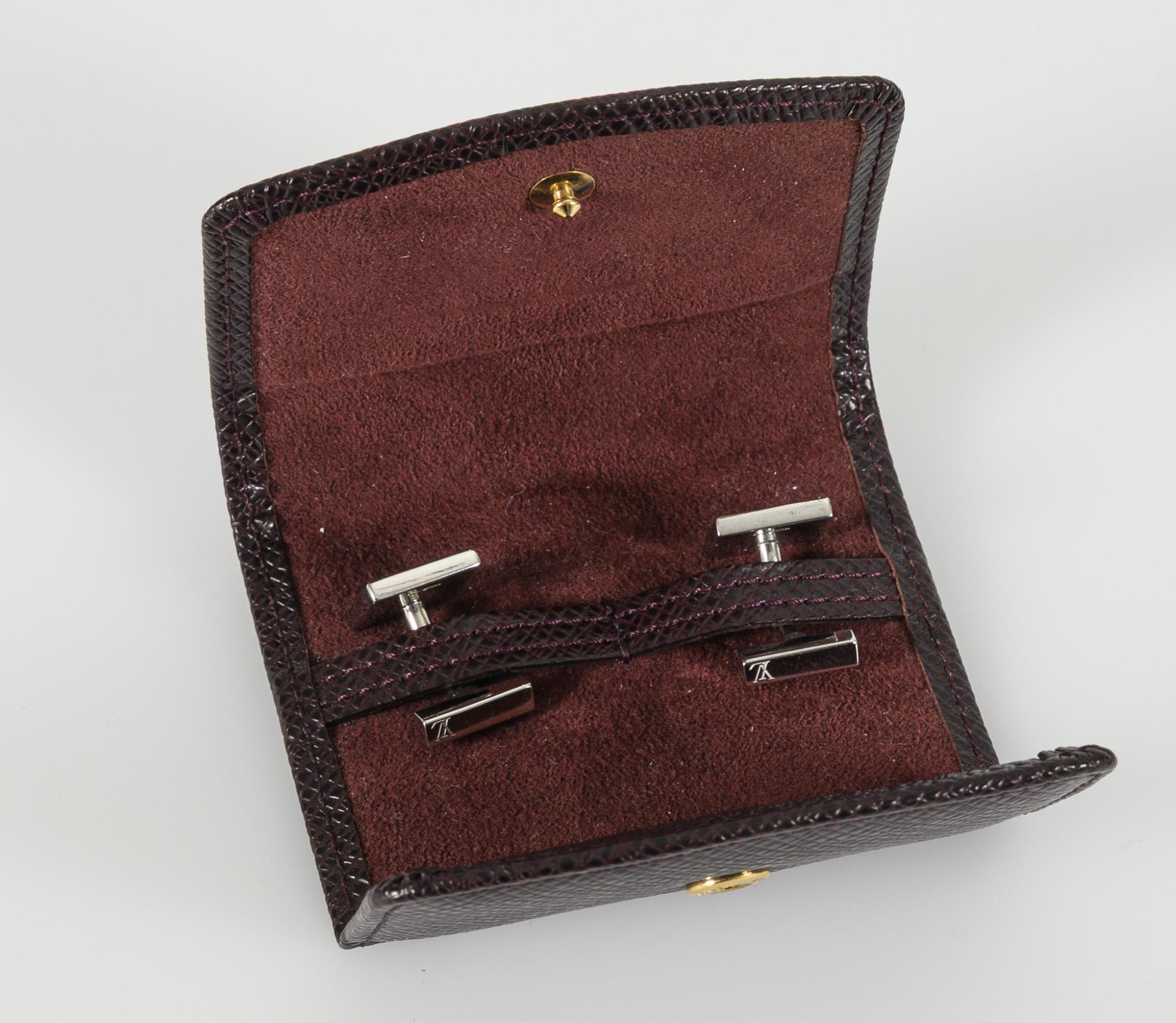 Manschettenknöpfe der Marke Louis Vuitton, Design "Damier". In zwei verschiedenen Blautönen schachbrettartig emaillierte Schauseiten mit unterliegender Guillochierung. Leichte Tragespuren.