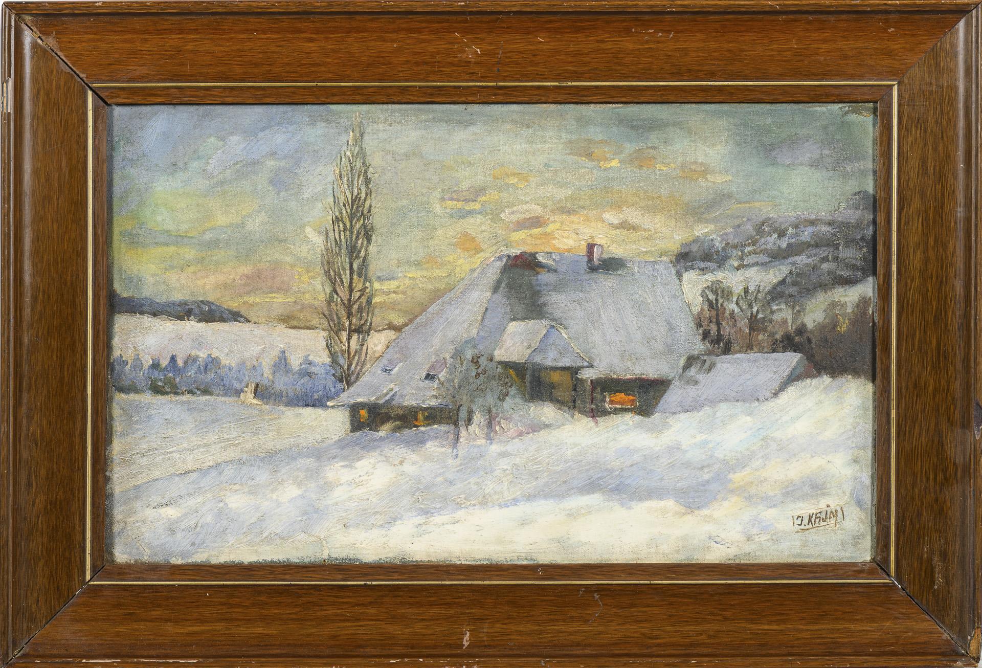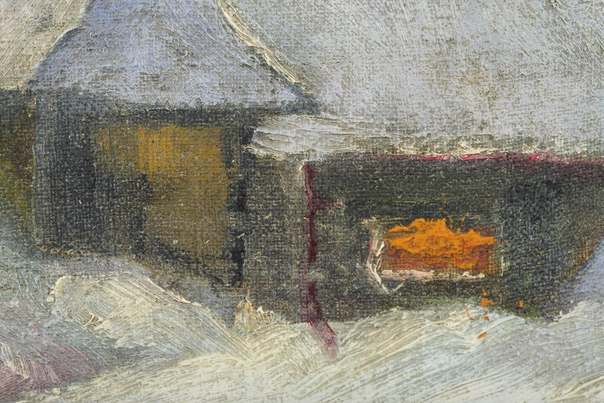 Russischer Maler: Abendliche Winterlandschaft mit Haus