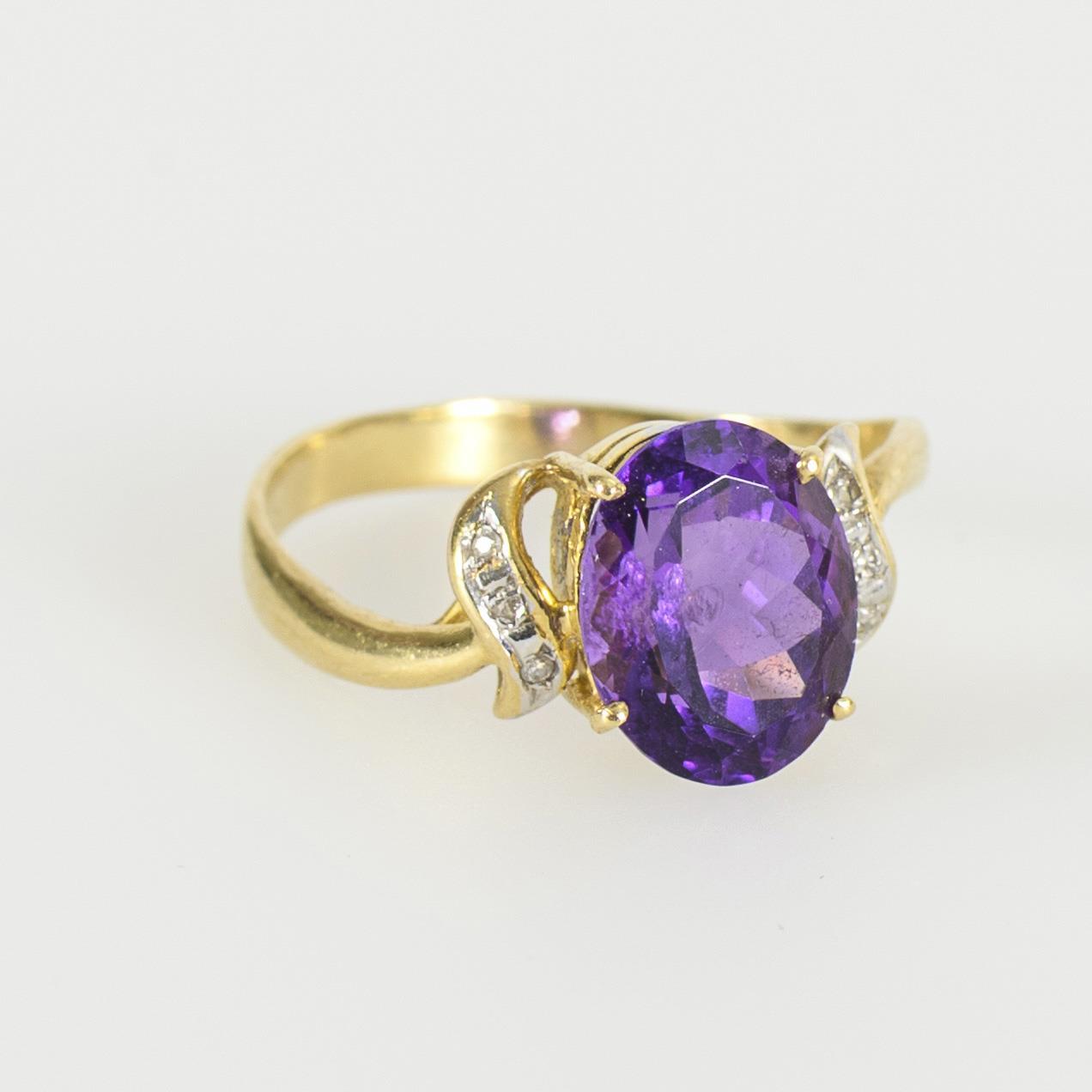 Gelbgold 14K und 585 gestempelt. Ringgröße 55,5, der Amethyst (in der Fassung gemessen) 10,04 x 7,99 mm. 2,3 g.