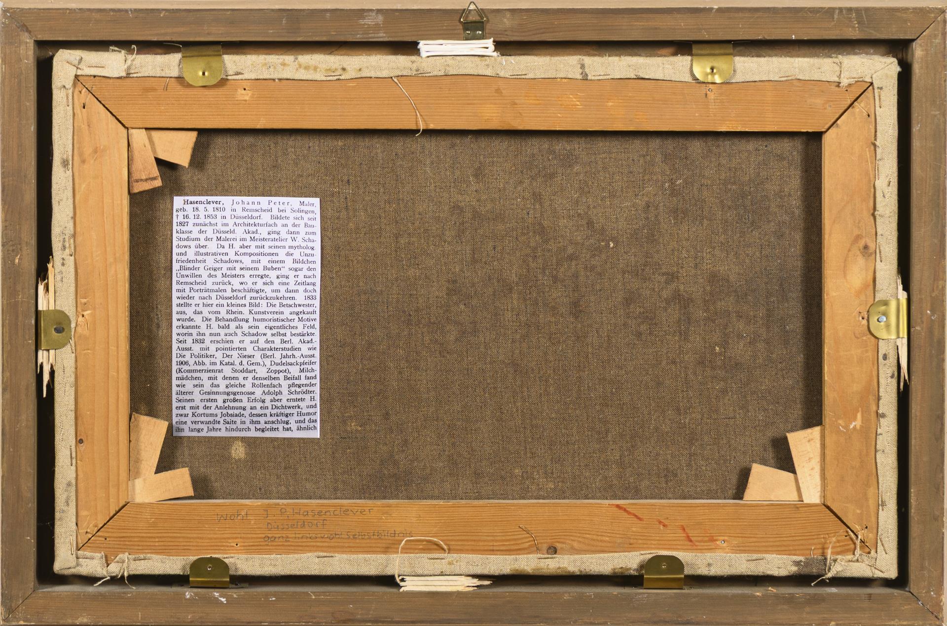 Wenn es sich um den Maler Johann Peter Hasenclever handeln sollte, dann gelten folgende biografische Daten: Deutscher Maler (1810 Remscheid - 1853 Düsseldorf), studierte an der Akademie Düsseldorf bei Schadow.
