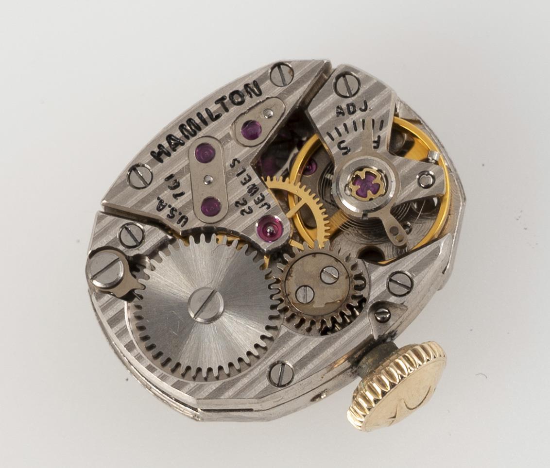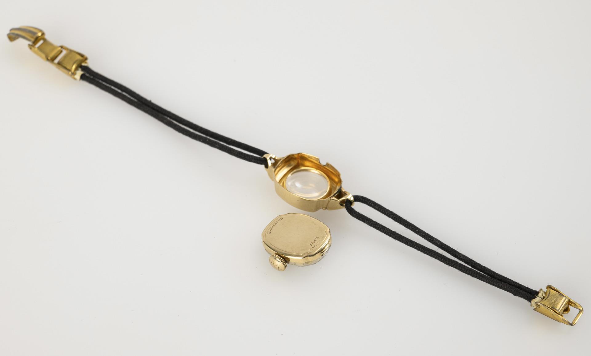 Goldene Damenarmbanduhr im Art-déco-Stil. Hamilton Watch Co., Lancaster PA.