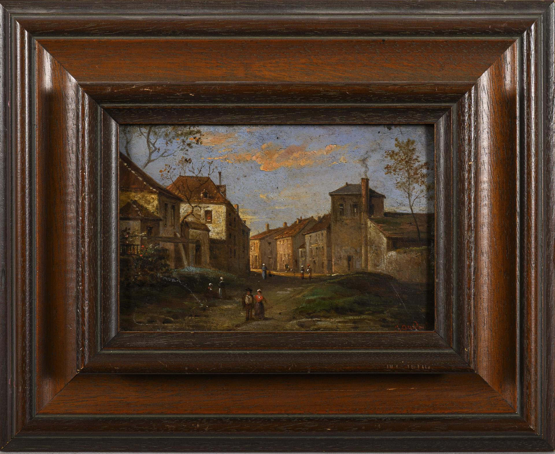 13 x 20 cm. gerahmt : 27 x 33,5 cm (profilierter Holzrahmen).