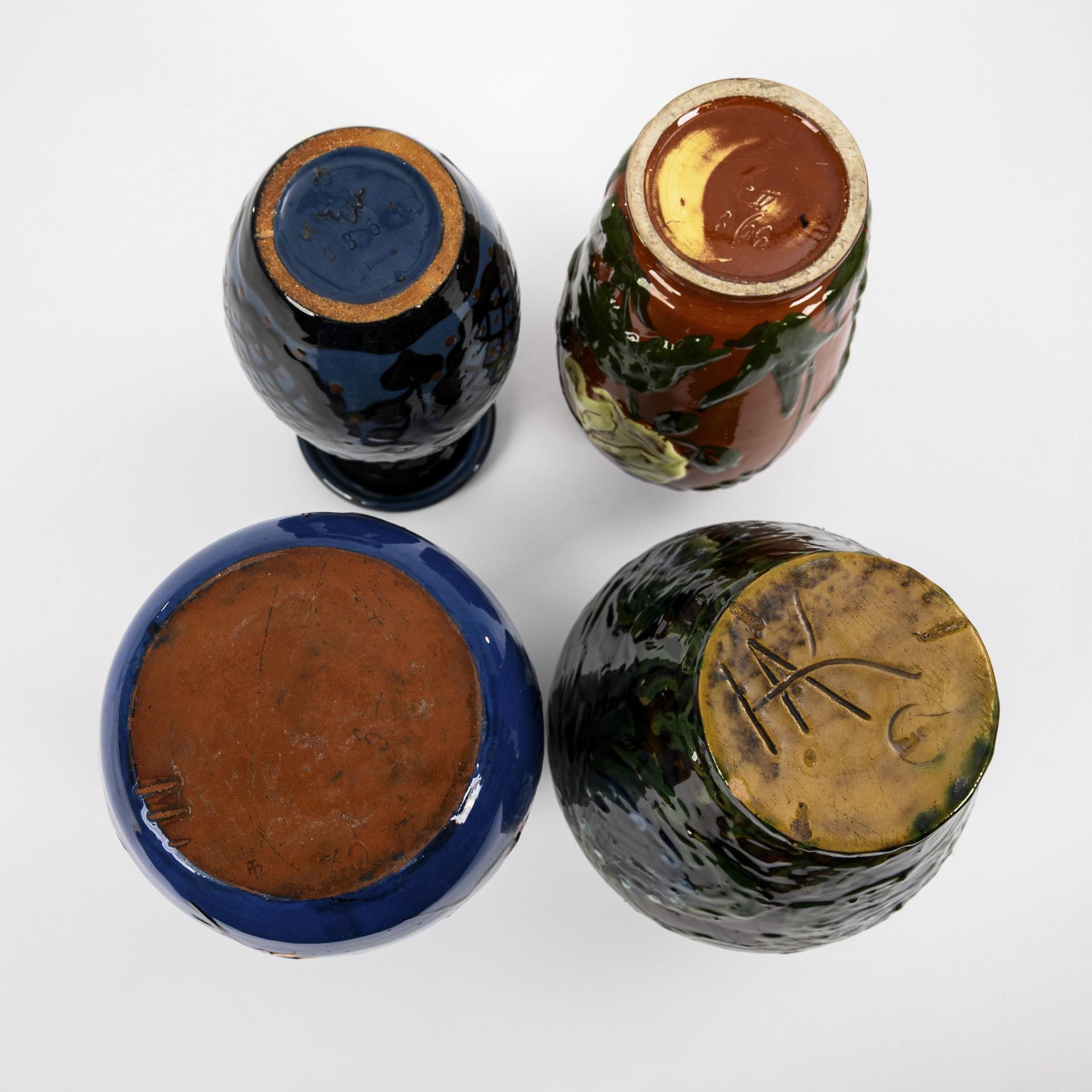 4 Jugendstil-Vasen mit floraler Schlickermalerei.
