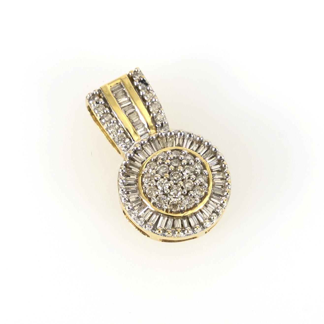 Kleiner, moderner Anhänger, besetzt mit Brillanten sowie Diamanten im Baguetteschliff.