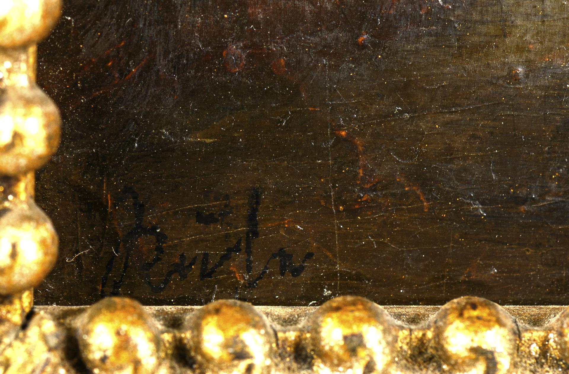 19 x 15 cm. gerahmt : 26 x 21,5 cm (dunkler Rahmen mit Goldstuckleiste).