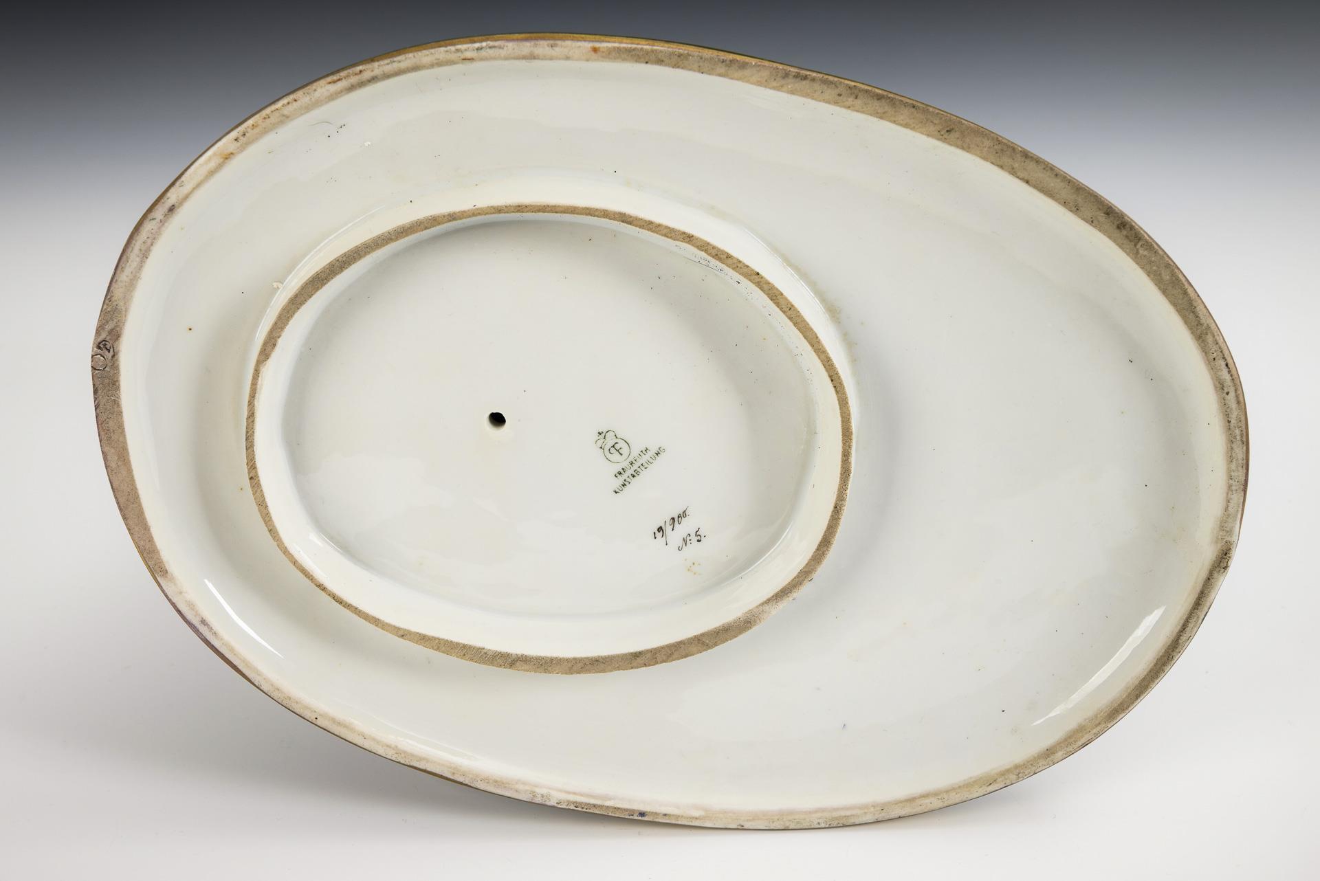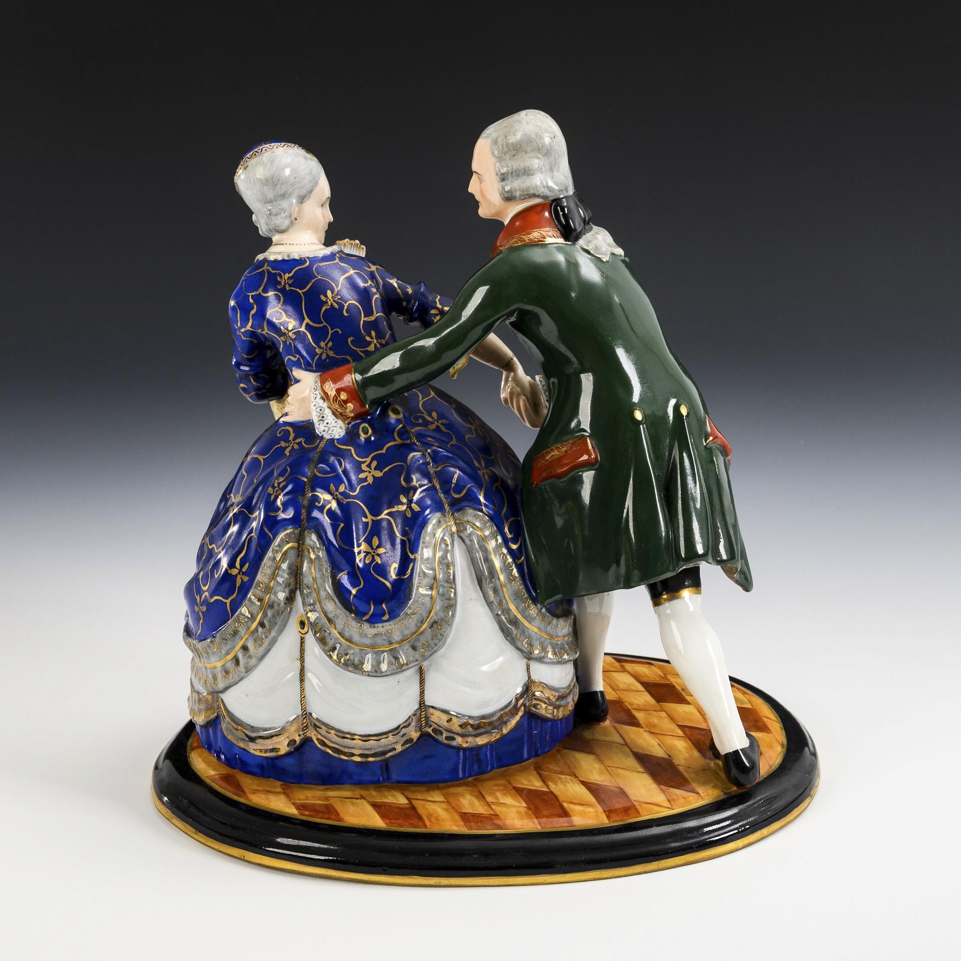Rokokodame mit Kavalier, auf einer Ovalplinthe stehend. Rechter Arm des Herren und rechter Arm der Dame restauriert.