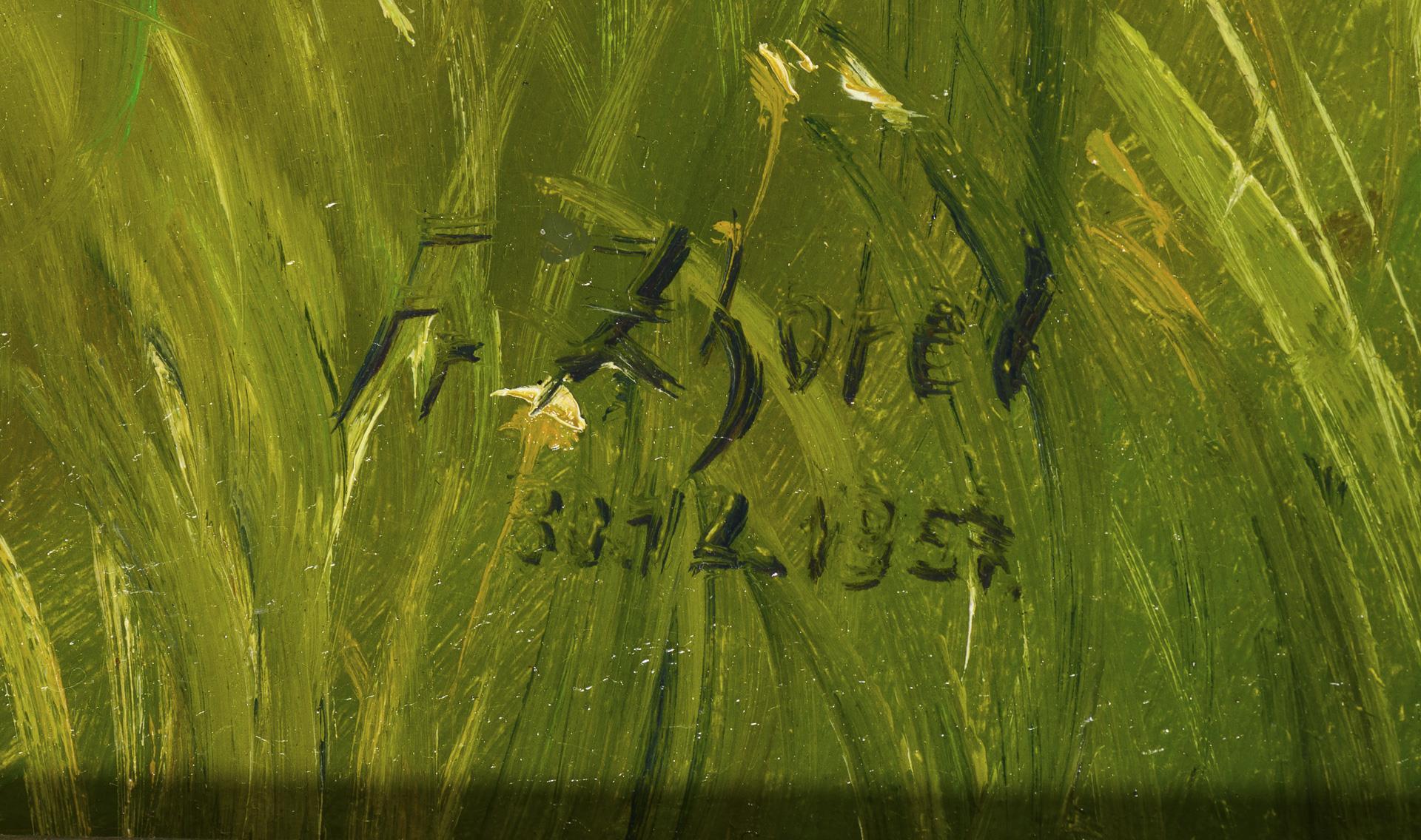 Öl/Malkarton. Rechts unten undeutlich signiert. 1957.