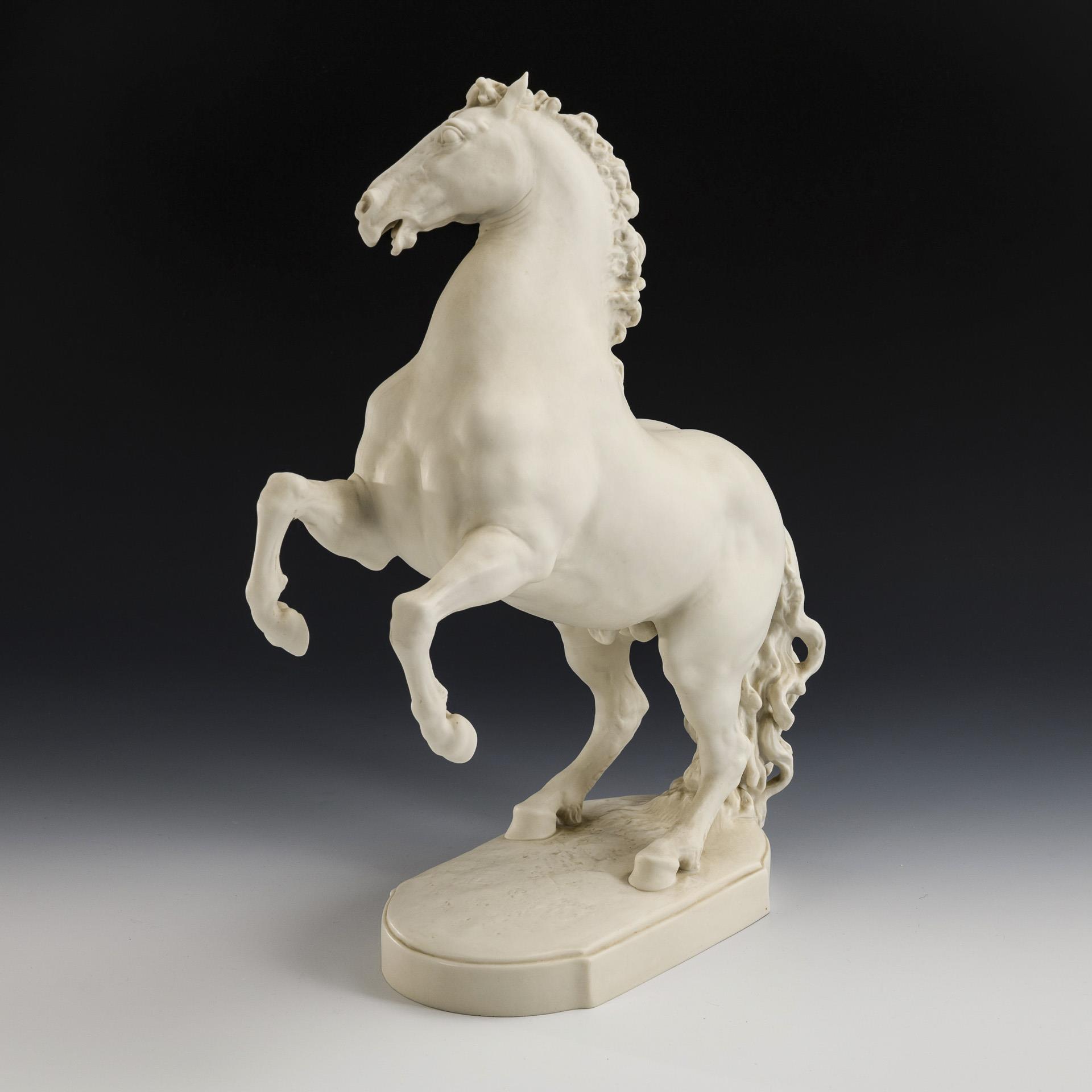 Plastik eines muskulösen, sich aufbäumenden Hengstes.