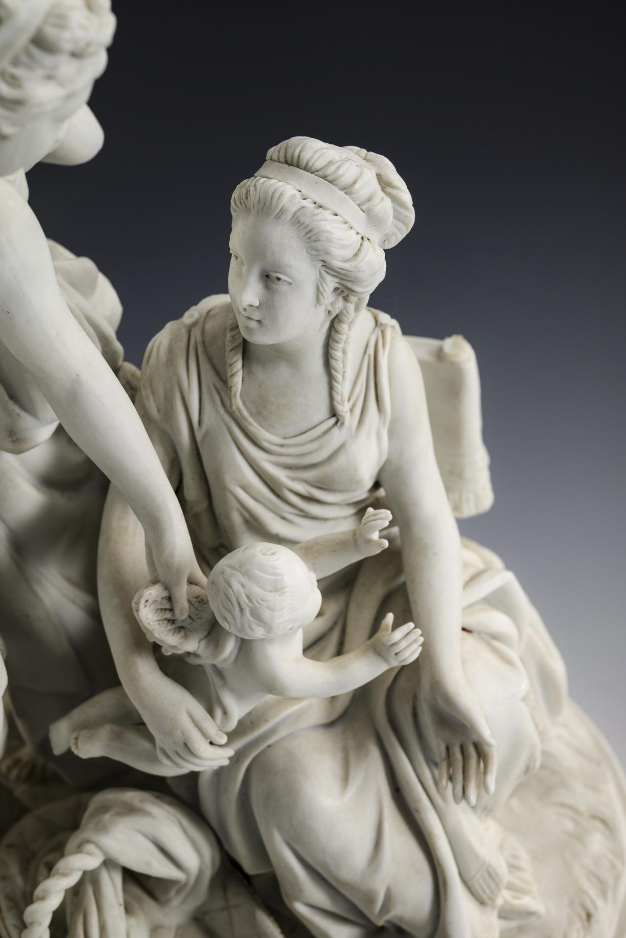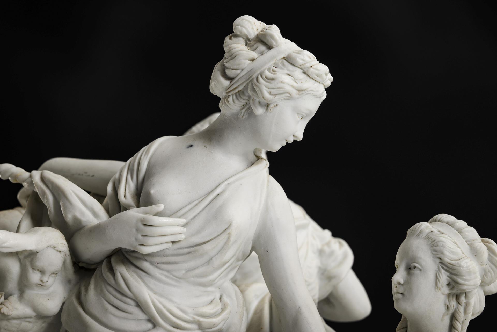 Biskuit-Figurengruppe: Drei Damen mit Amoretten.