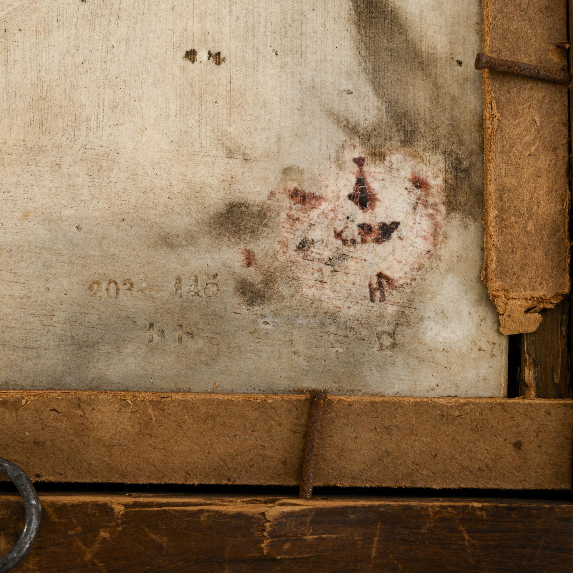 Polychrome Malerei. 22,5 x 17 cm, im bronzierten Holzrahmen (30 x 24,5 cm).