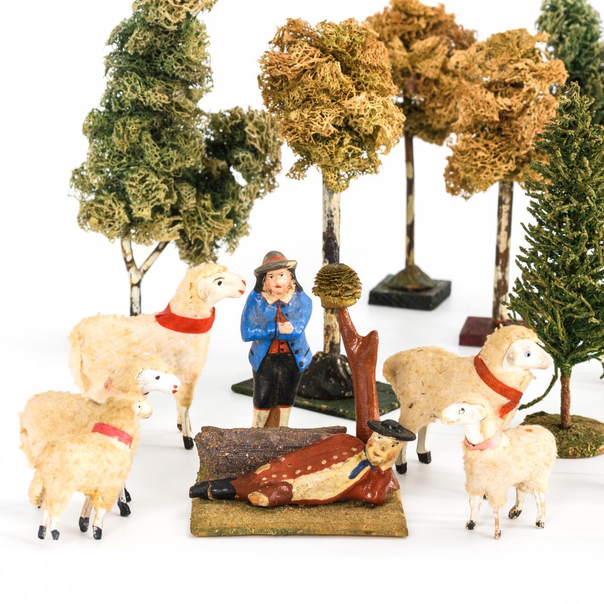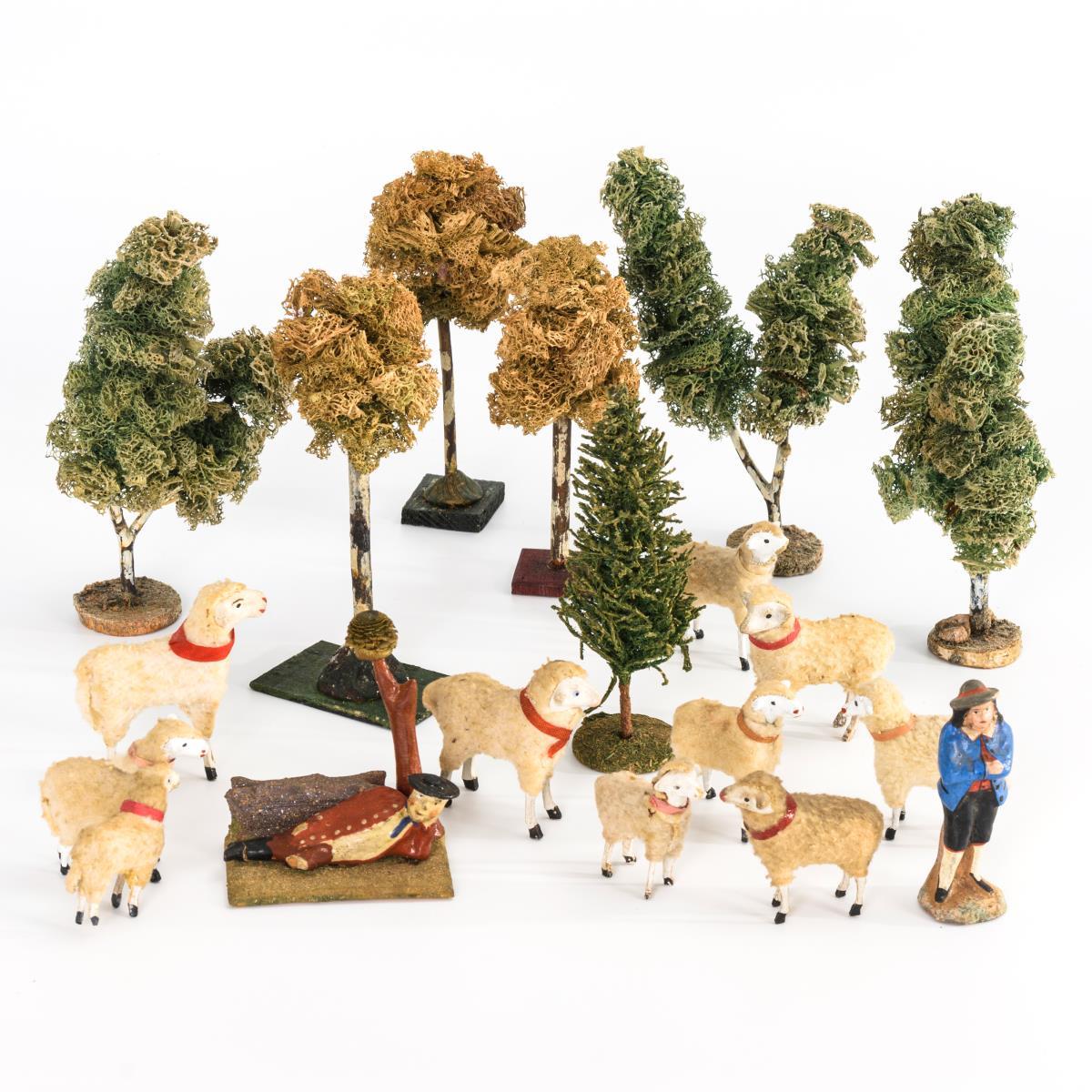 10 Schafe, 8 Luffabäume, 2 Schäfer. Alters- und Gebrauchsspuren, partiell Defekte.