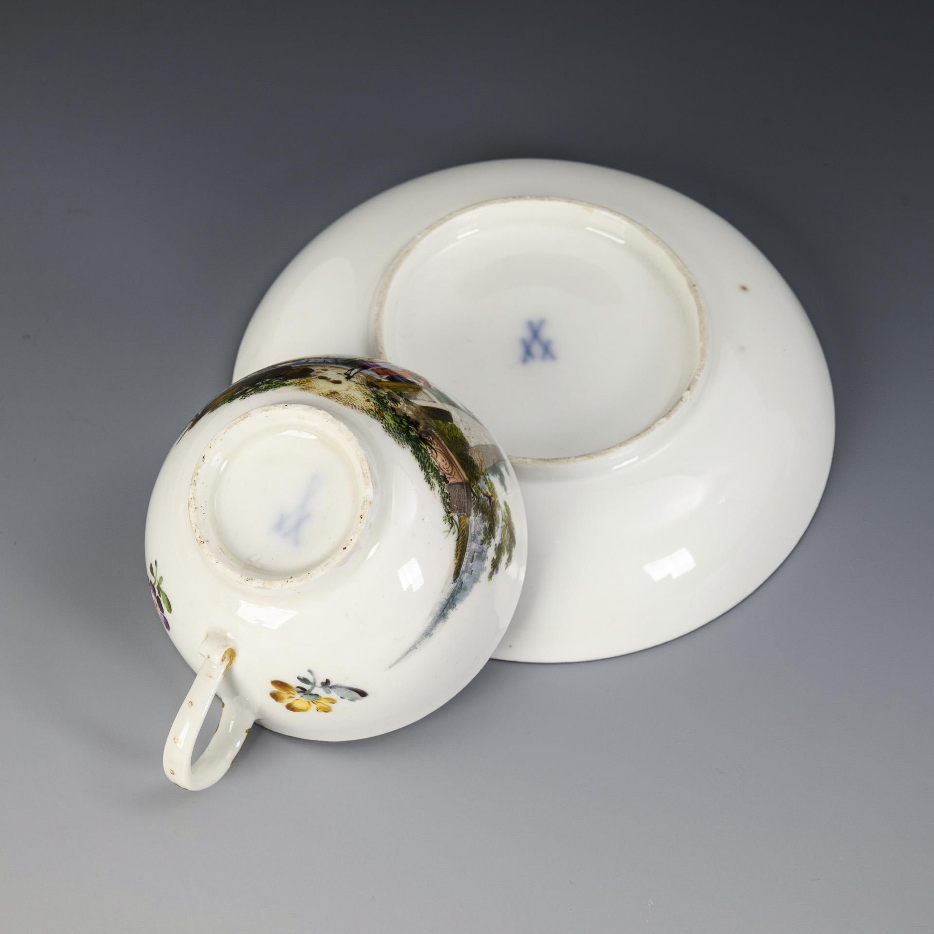 Barocke Tasse mit Landschafts- und Figurenmalerei. Meissen.