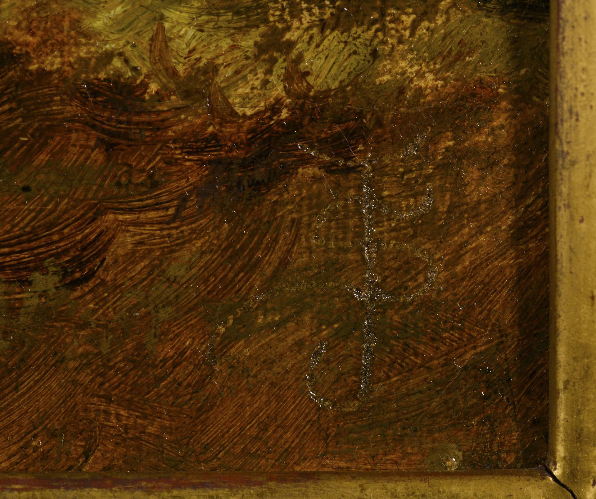 Öl/Leinwand. Rechts unten geritzt monogrammiert, verso bezeichnet.
