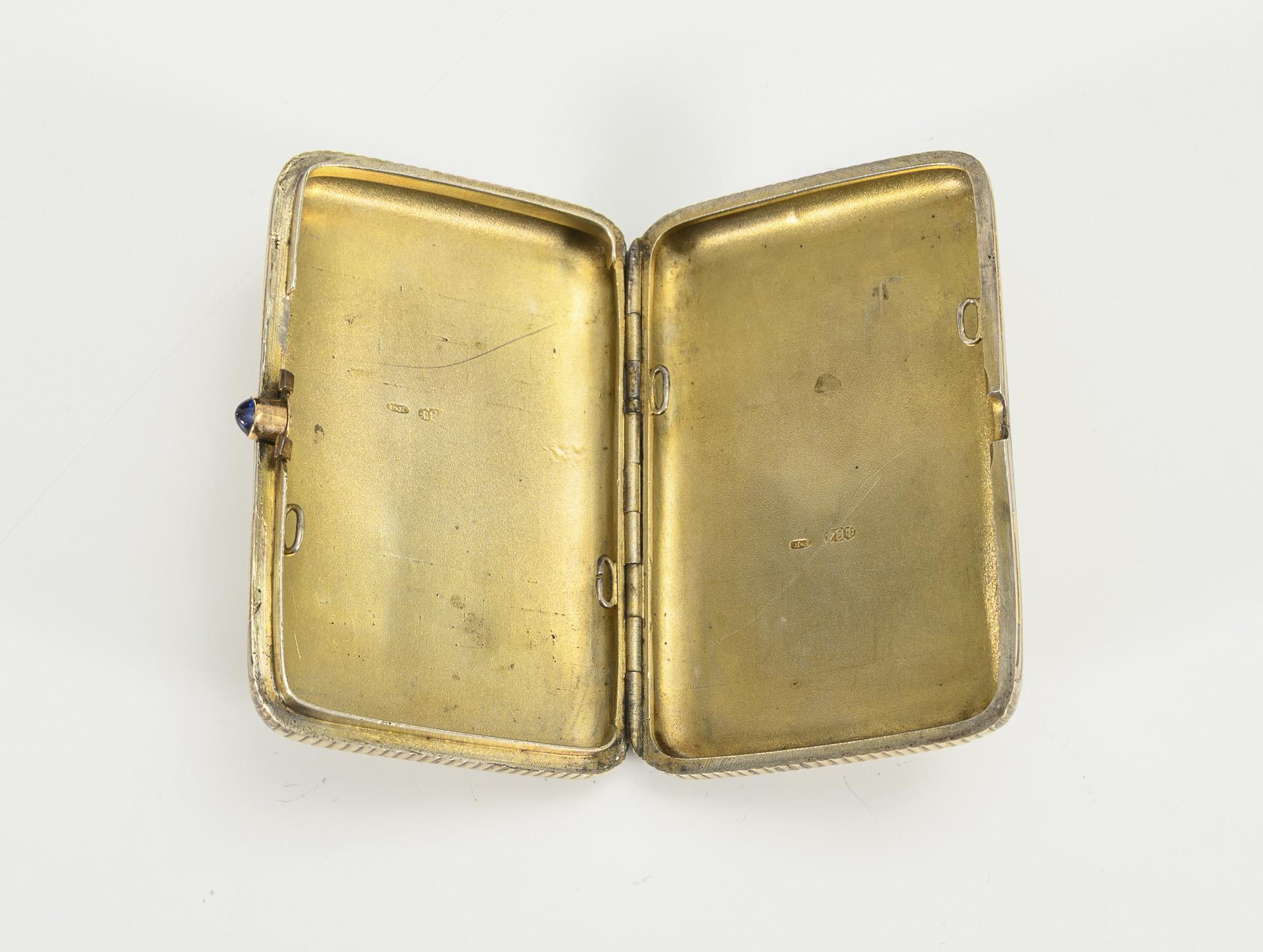 Russisches Zigarettenetui mit blauem Cabochon.