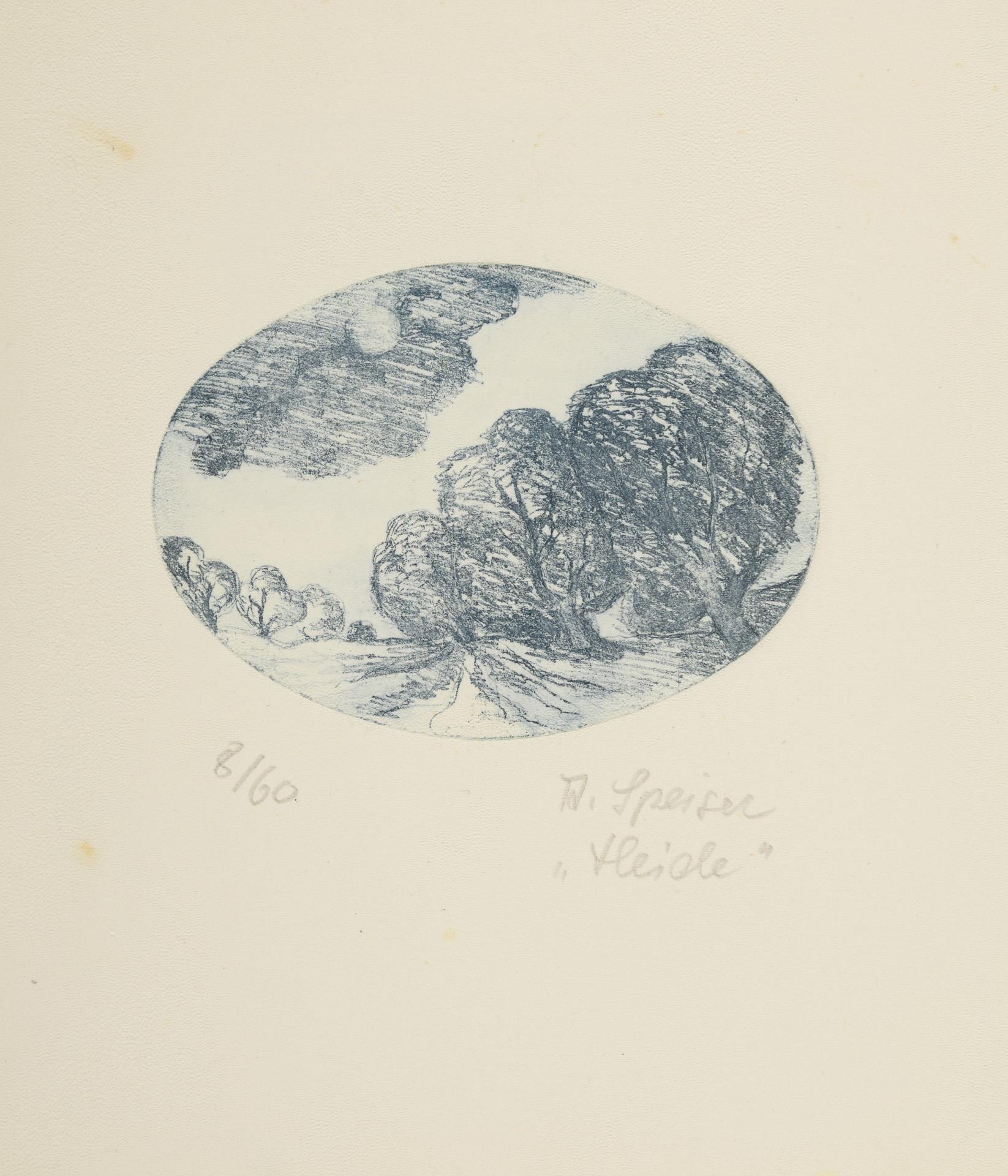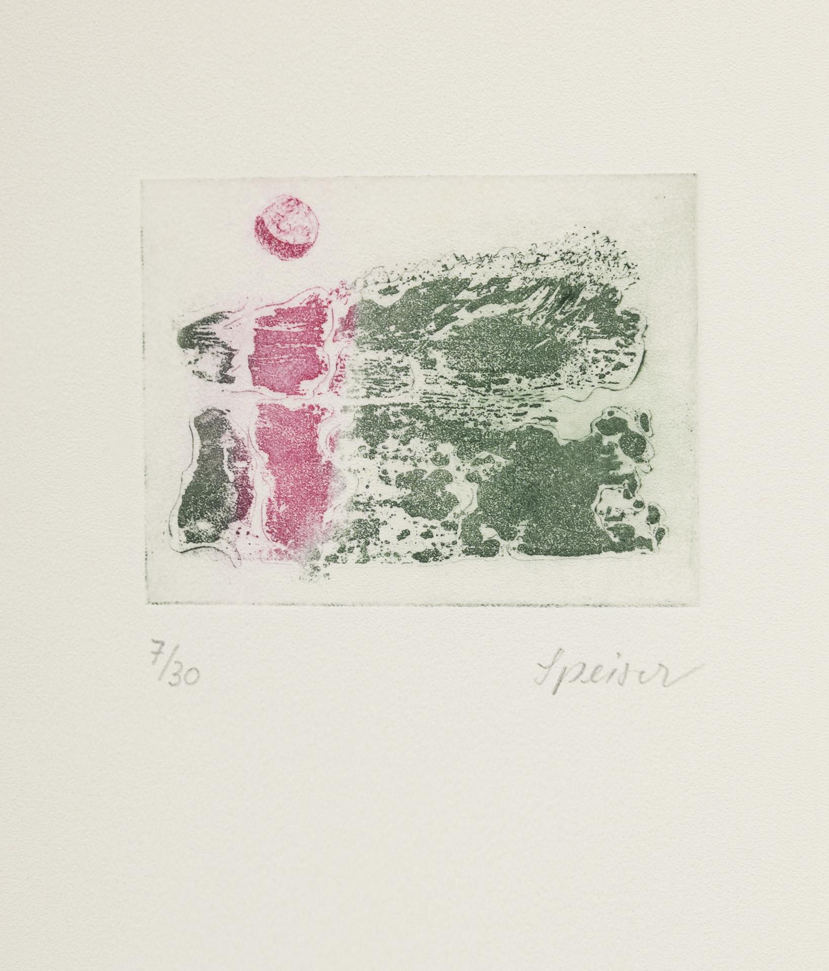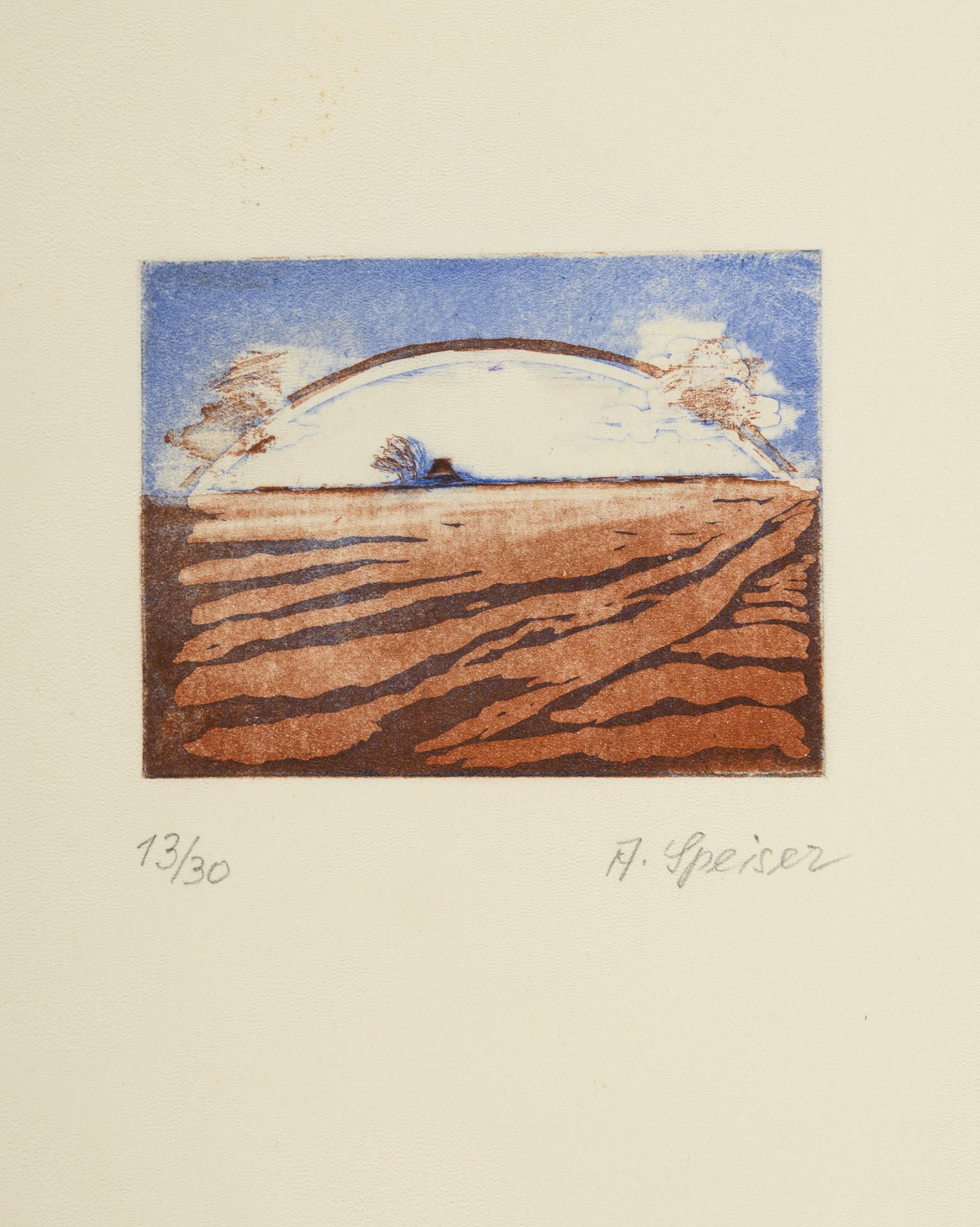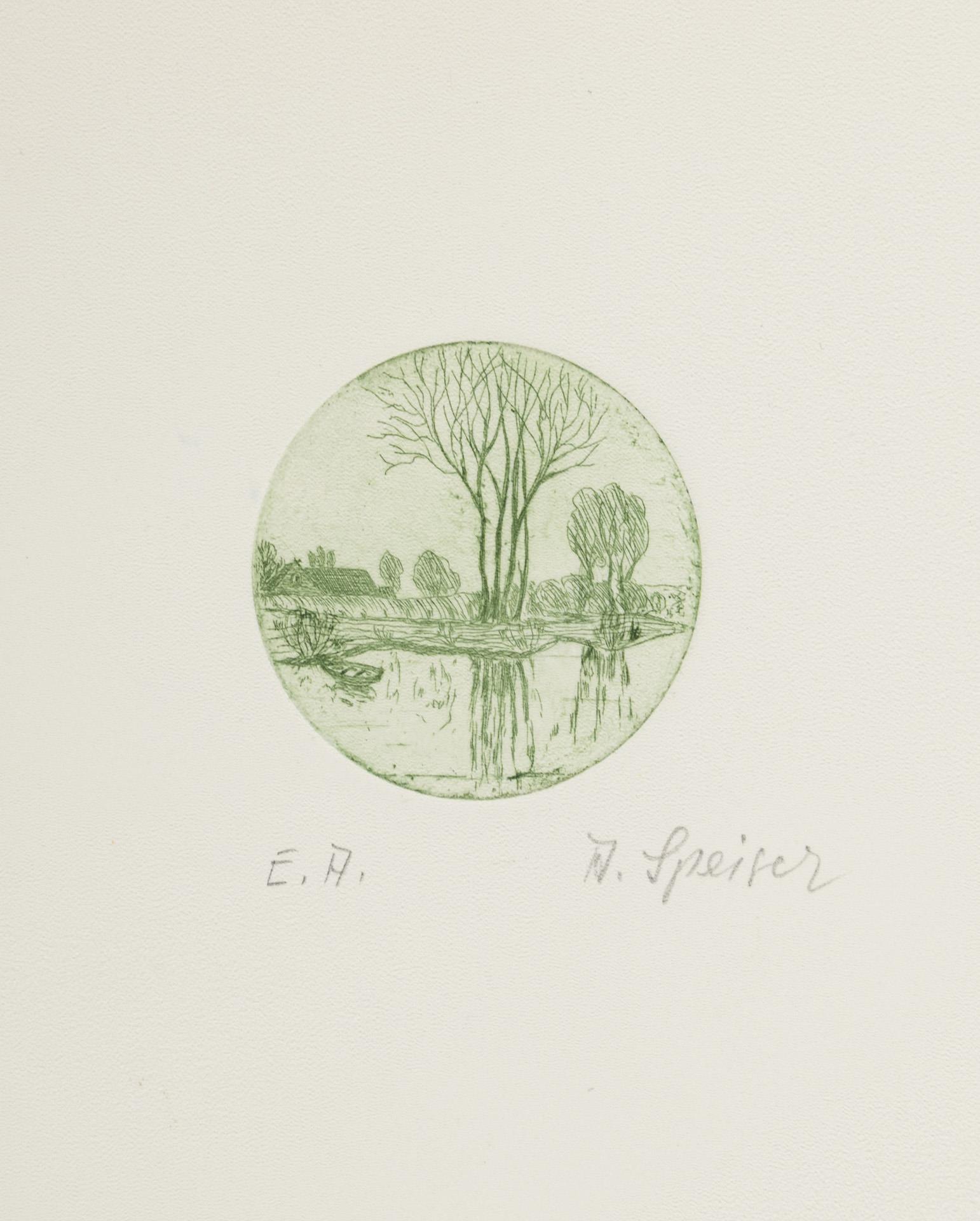 Bochumer Künstlerin. Viele Blätter sind nummeriert und die Auflagen sind zwischen 30 und 60 Stück hoch. Katzenmotive, kleine Landschaften, andere Tiere. Blätter in Klarsichthüllen in einem kleinen, modernen Ordner.