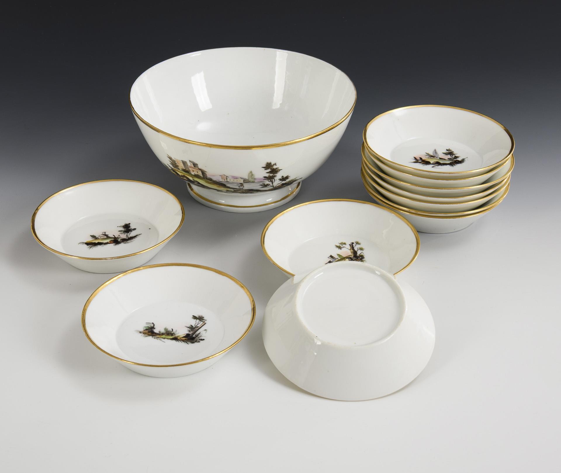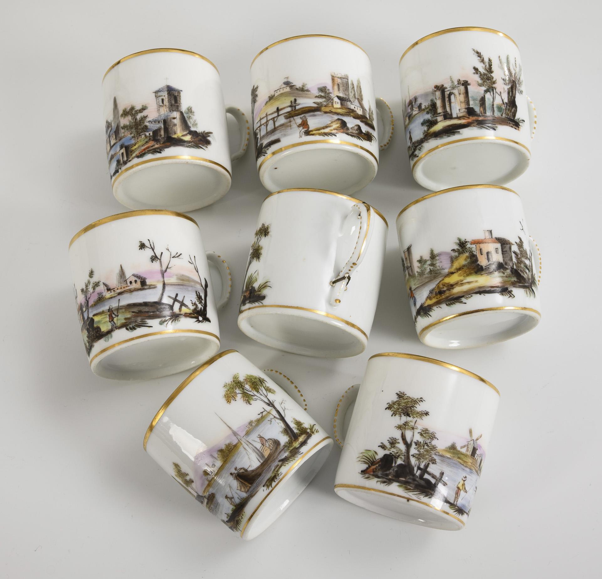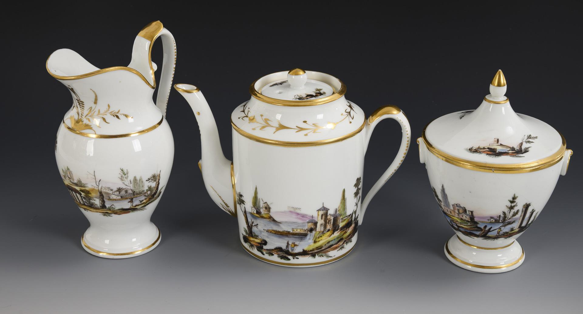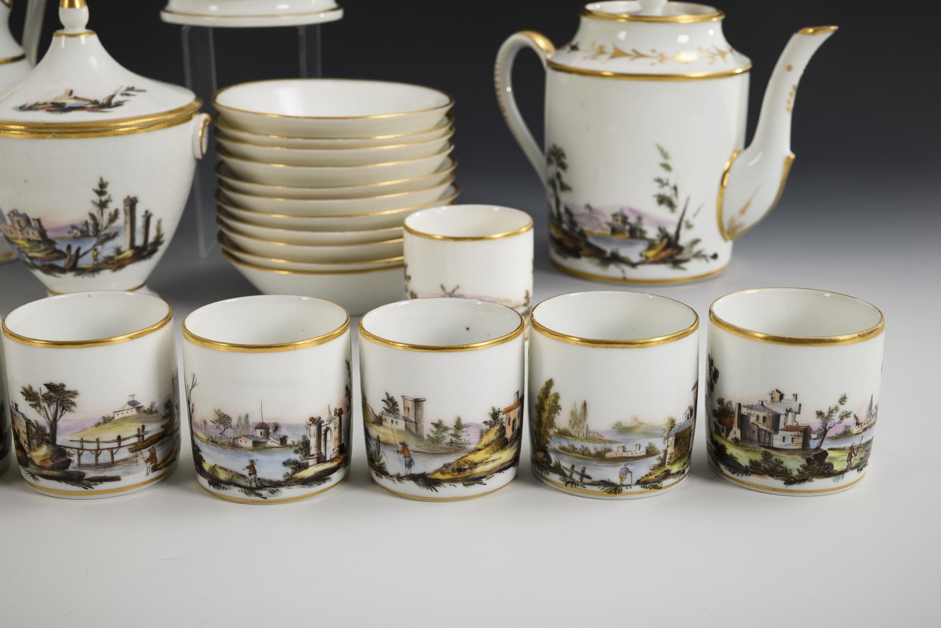Empire-Kaffeeservice mit Landschaftsmalerei.