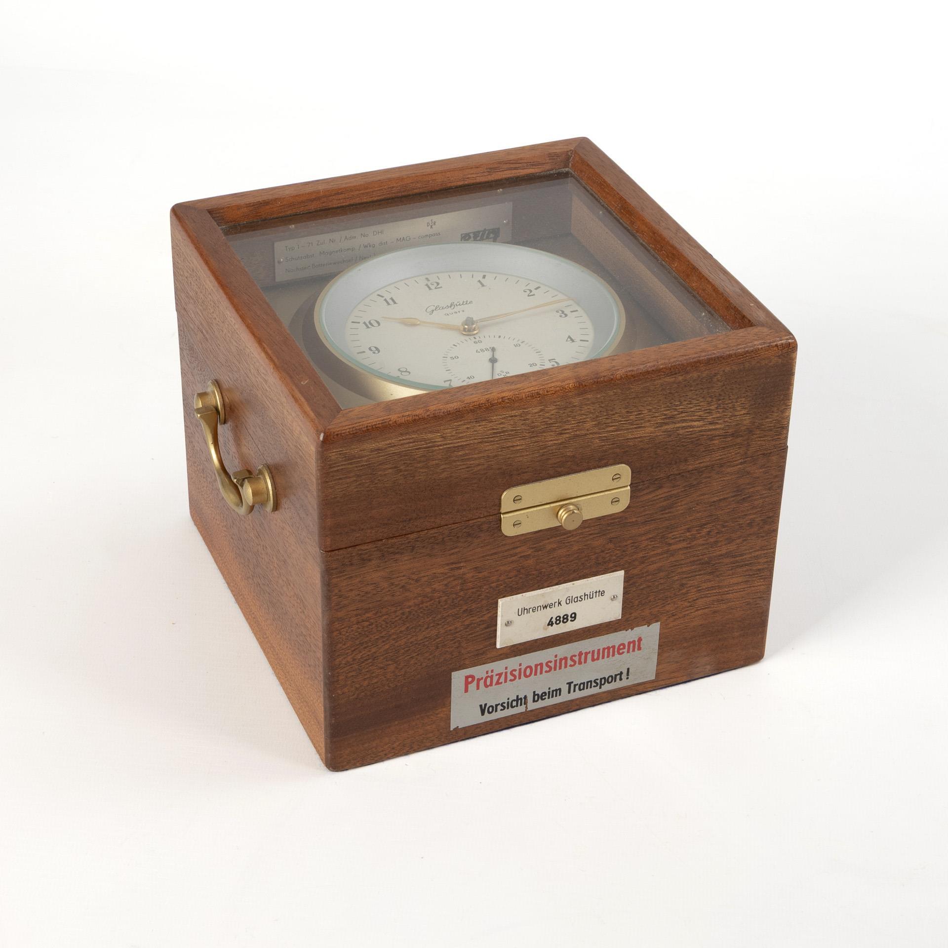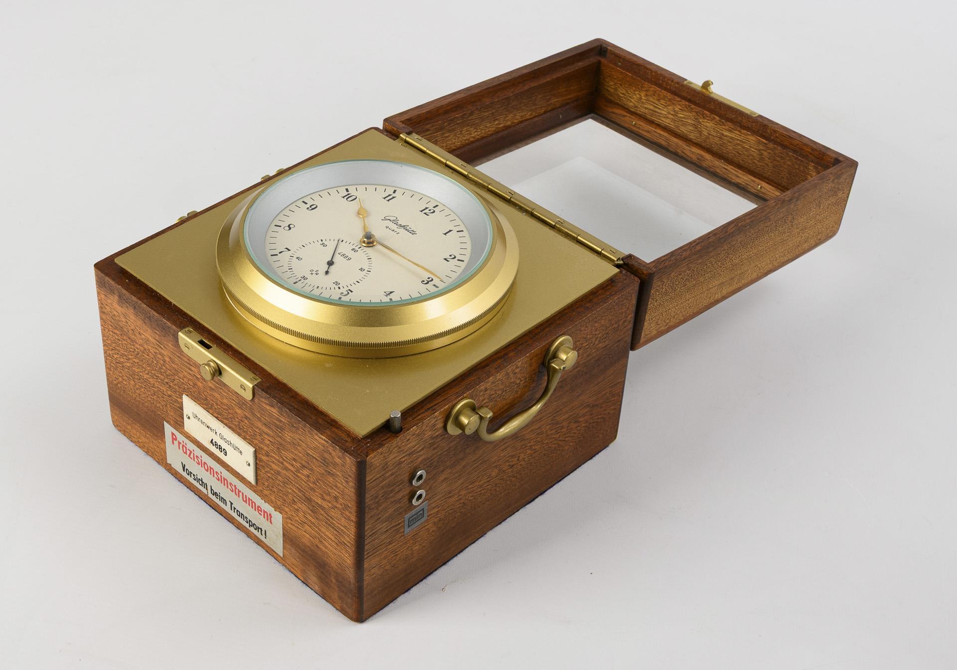 "Glashütte Quarz"-Schiffschronometer in Transportkasten. Glashütte.